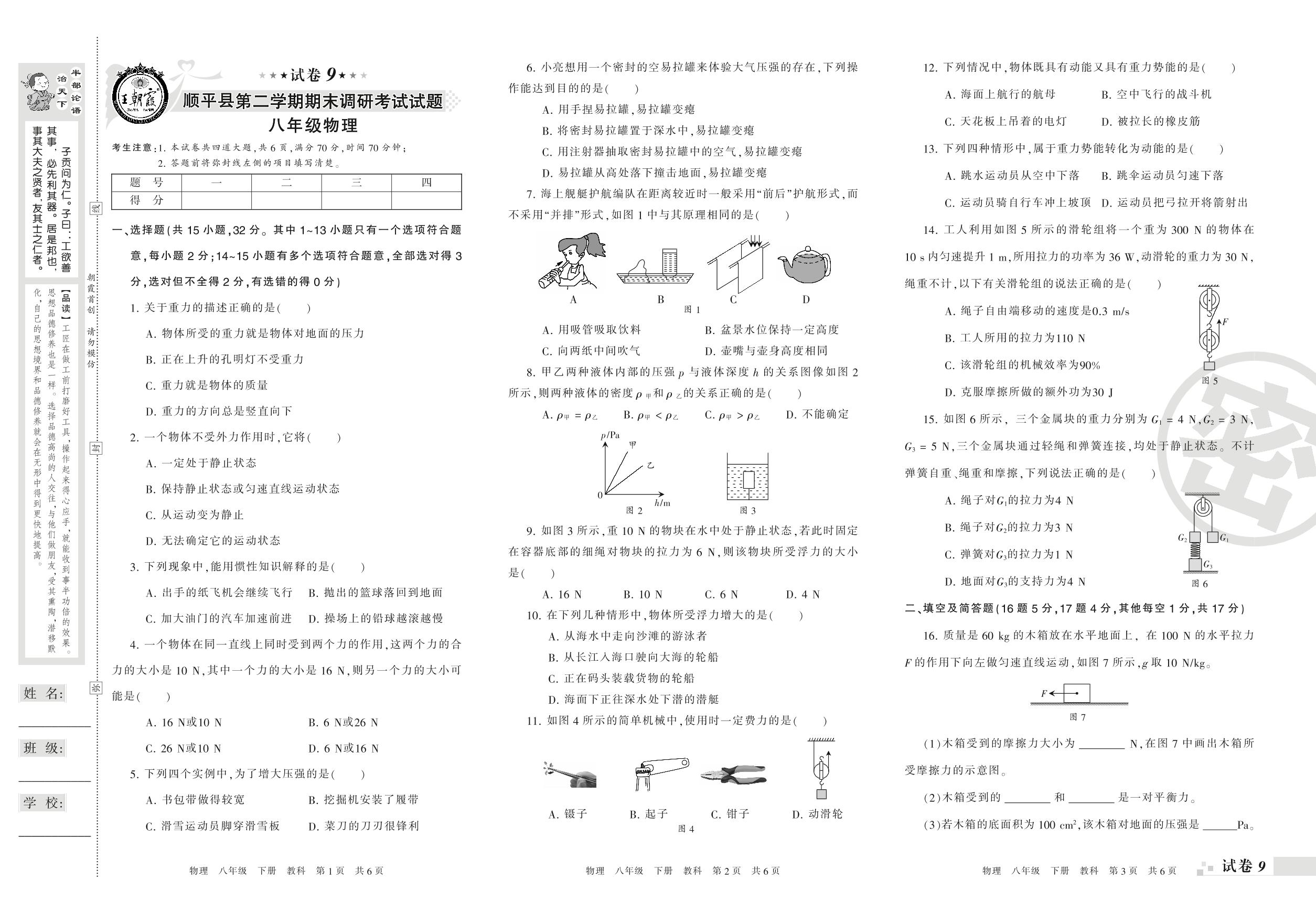 2016-2017学年第二学期保定市顺平县八年级物理试卷(教科版)【9】