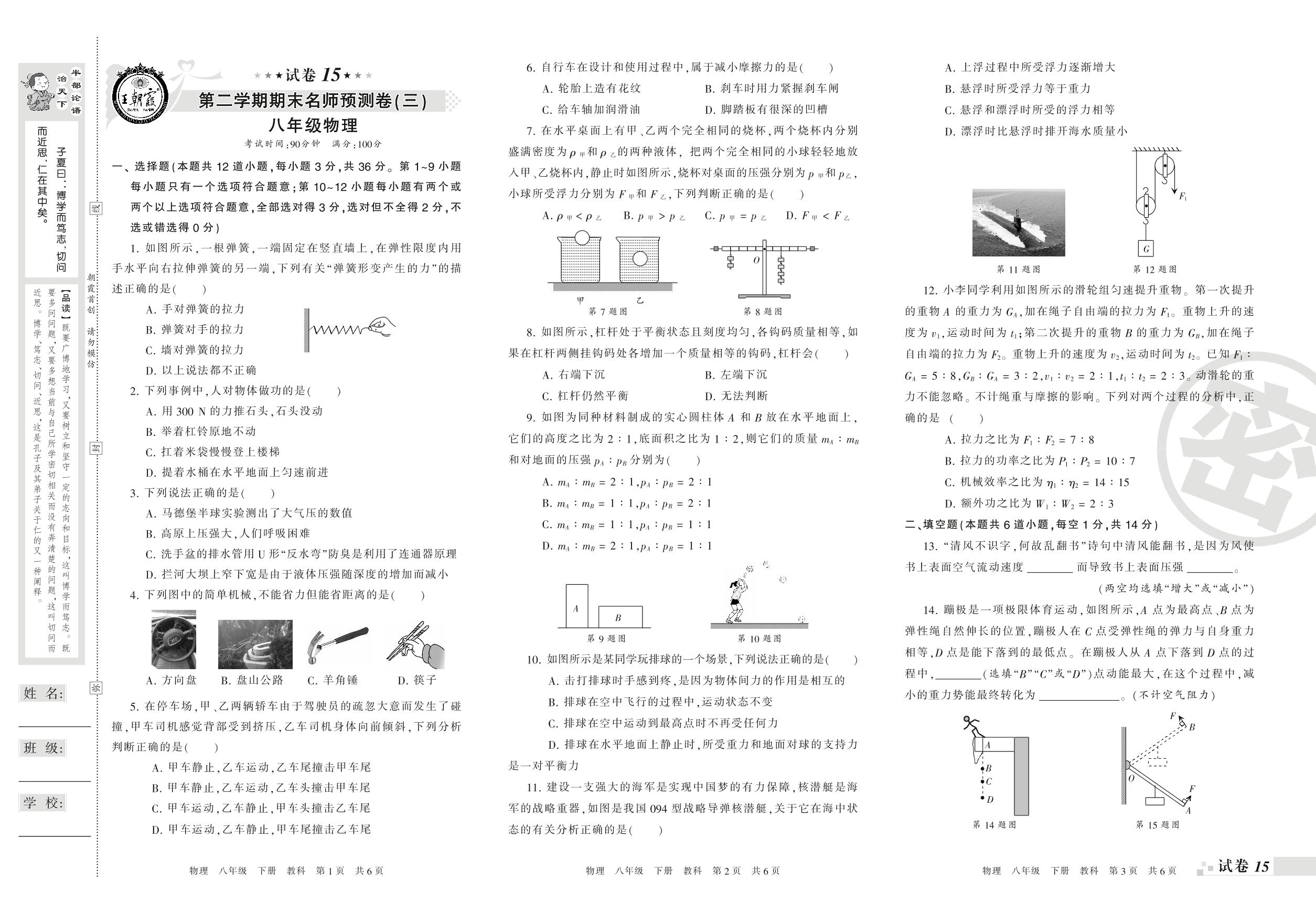 2017-2018学年第二学期期末预测卷(三)八年级物理(教科版)【15】