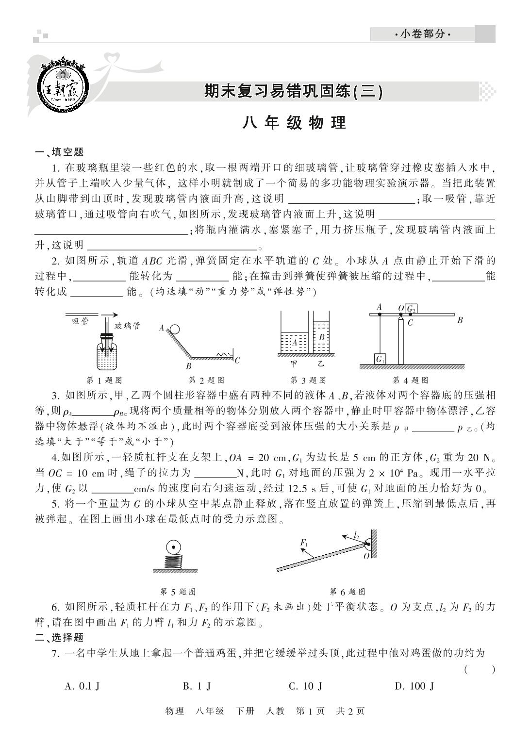 王朝霞期末小卷——期末复习易错巩固练(三)八年级下册物理(人教版)【0】