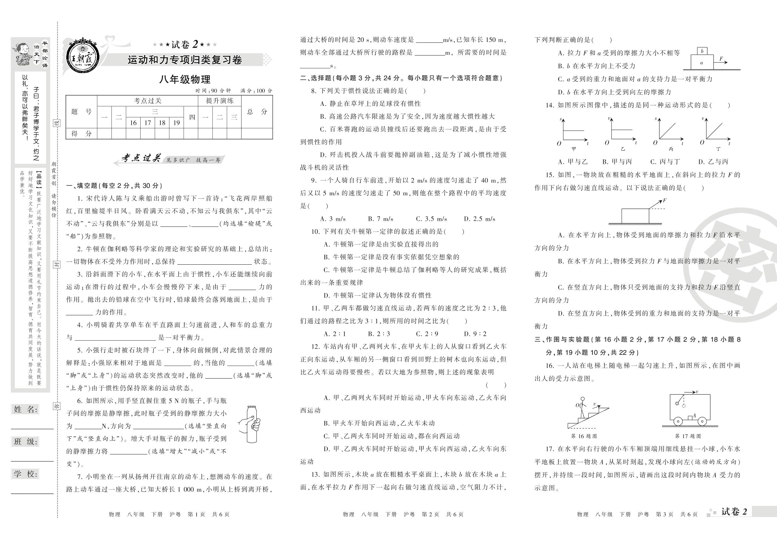 王朝霞期末专项卷——运动和力专项归类复习卷八年级下册物理(沪粤版)【2】