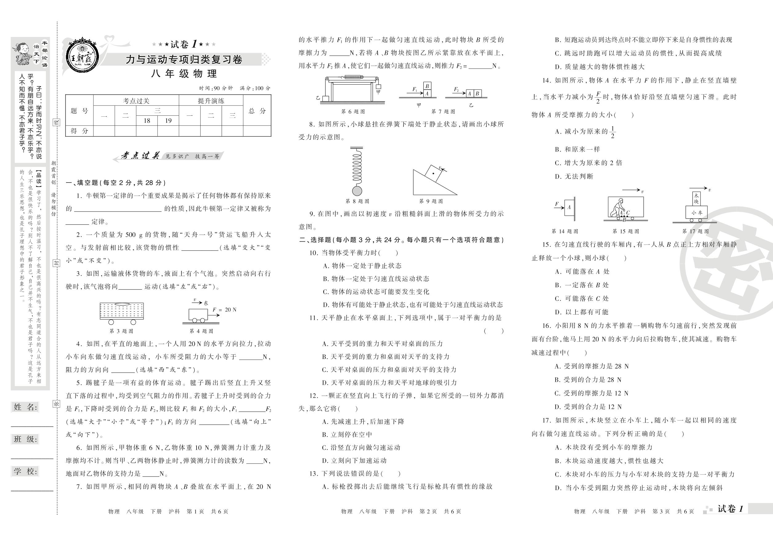 王朝霞期末专项卷——力与运动专项归类复习卷八年级下册物理(沪科版)【1】