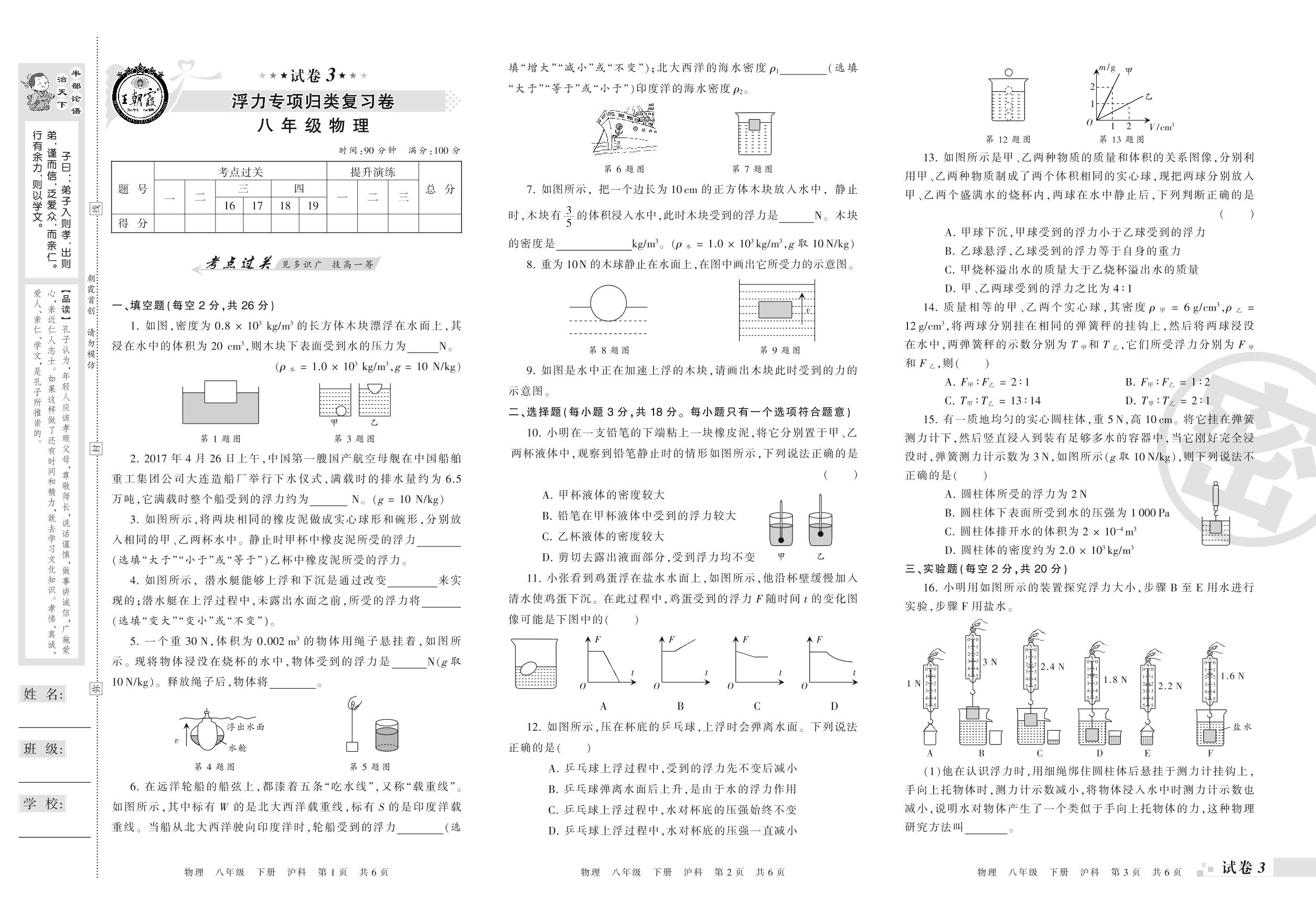 王朝霞期末专项卷——浮力专项归类复习卷八年级下册物理(沪科版)【3】