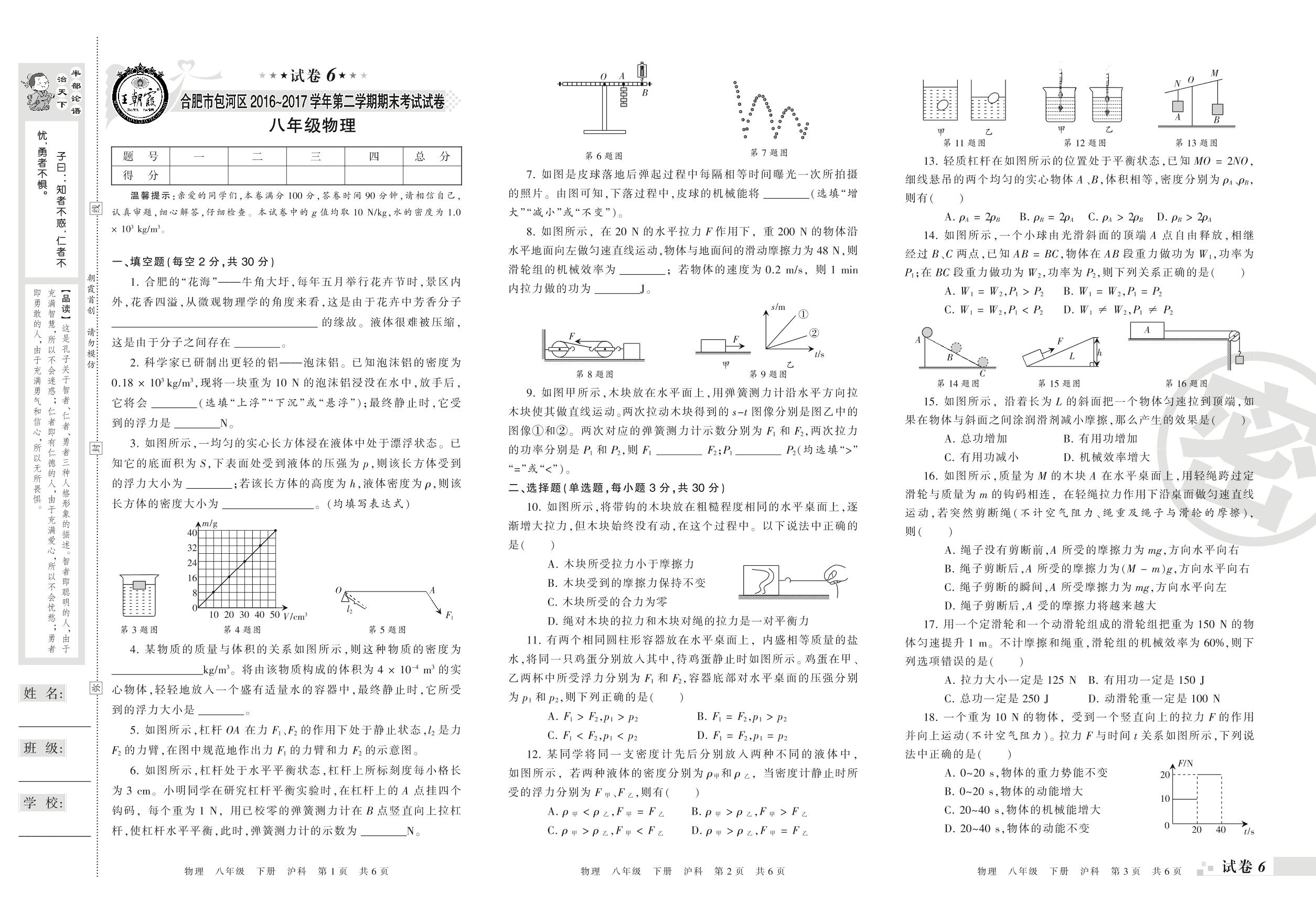 2016-2017学年第二学期合肥市包河区八年级物理试卷(沪科版)【6】