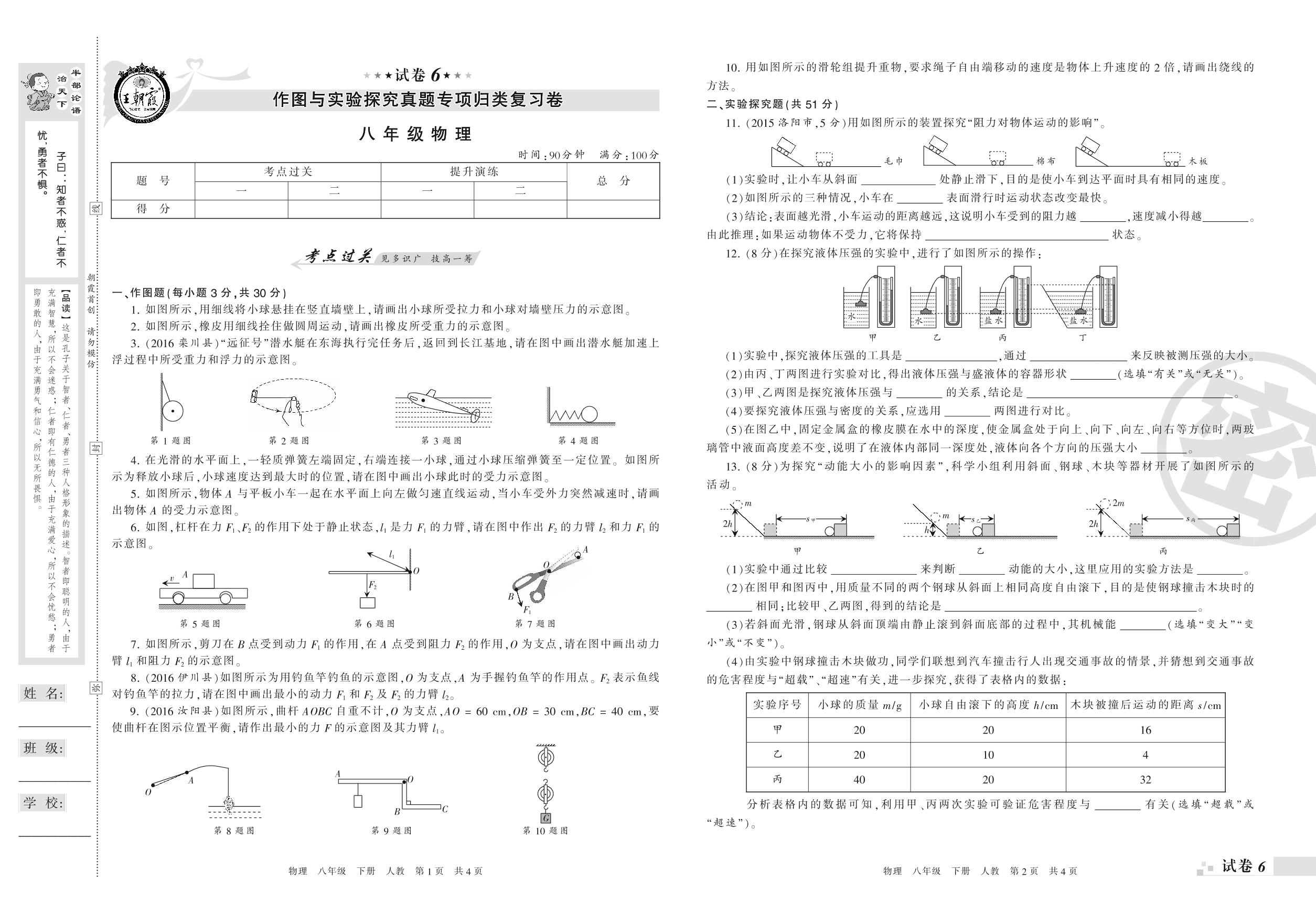 王朝霞期末专项卷——作图与实验探究真题专项归类复习卷八年级下册物理(人教版)_R220122153805570【6】