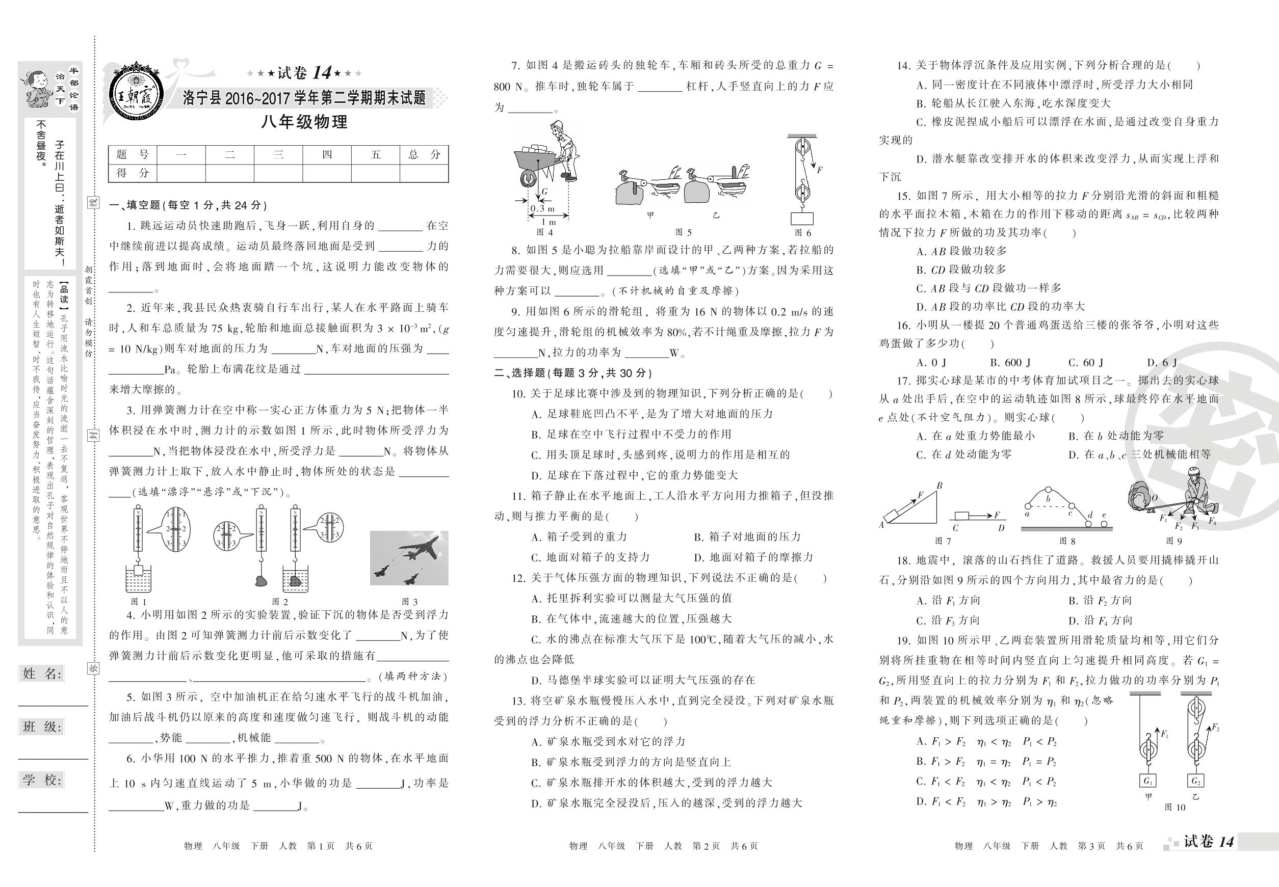 2016-2017学年第二学期洛阳市洛宁县八年级物理试卷(人教版)【14】