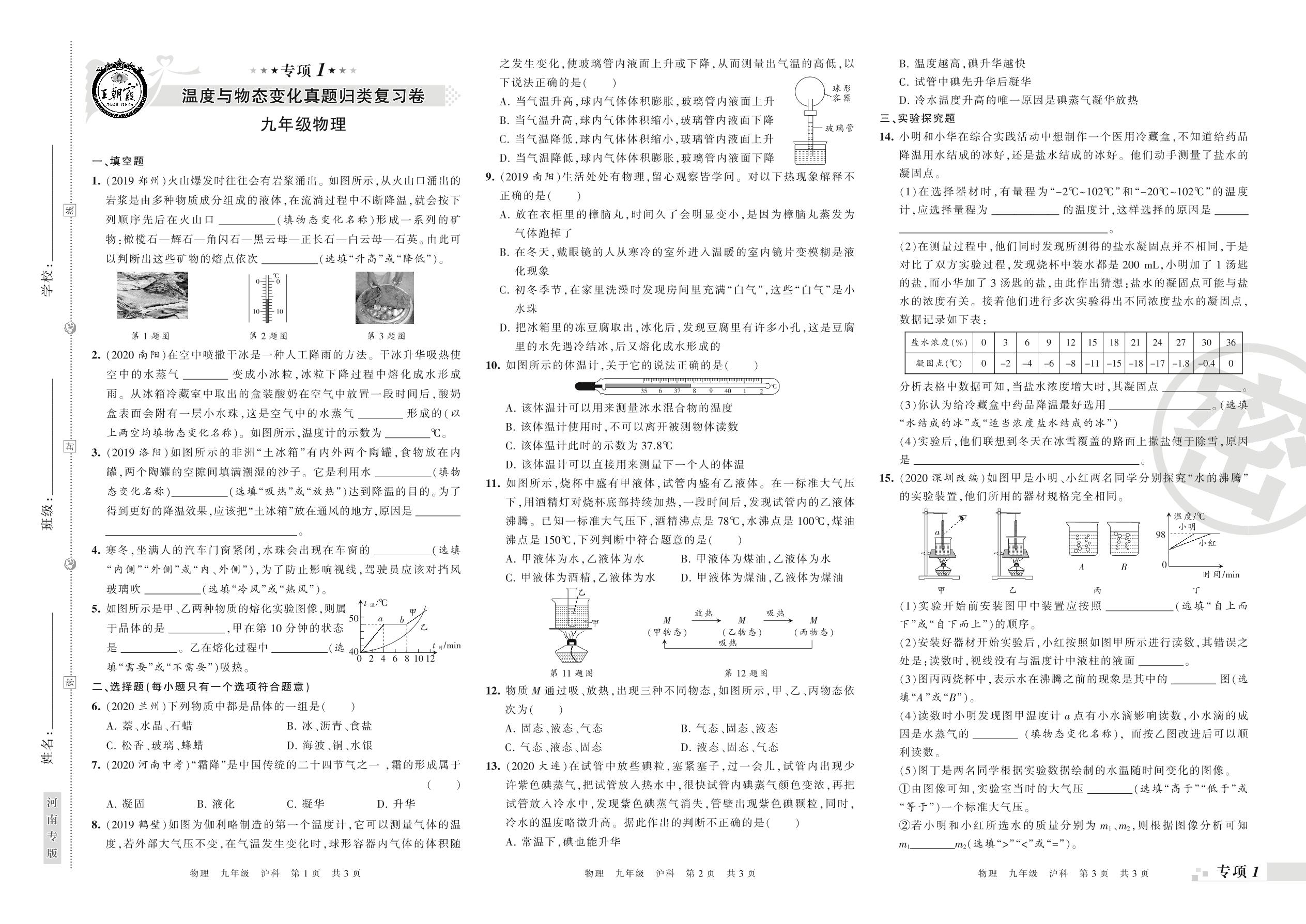 王朝霞期末专项卷——温度与物态变化、内能与热机真题归类复习九年级上册物理(沪科版)【0】