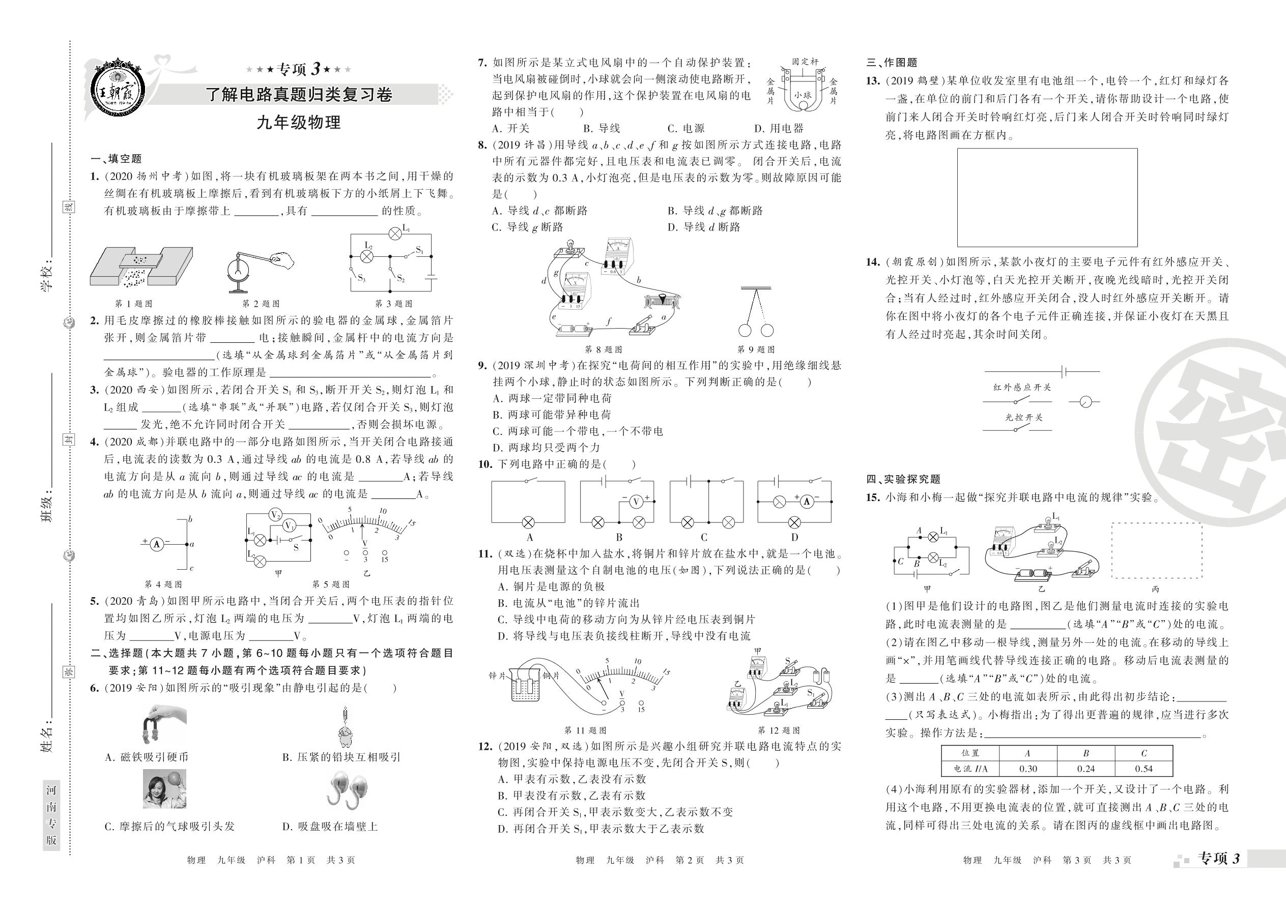 王朝霞期末专项卷——了解电路、探究电路真题归类复习九年级上册物理(沪科版)【0】