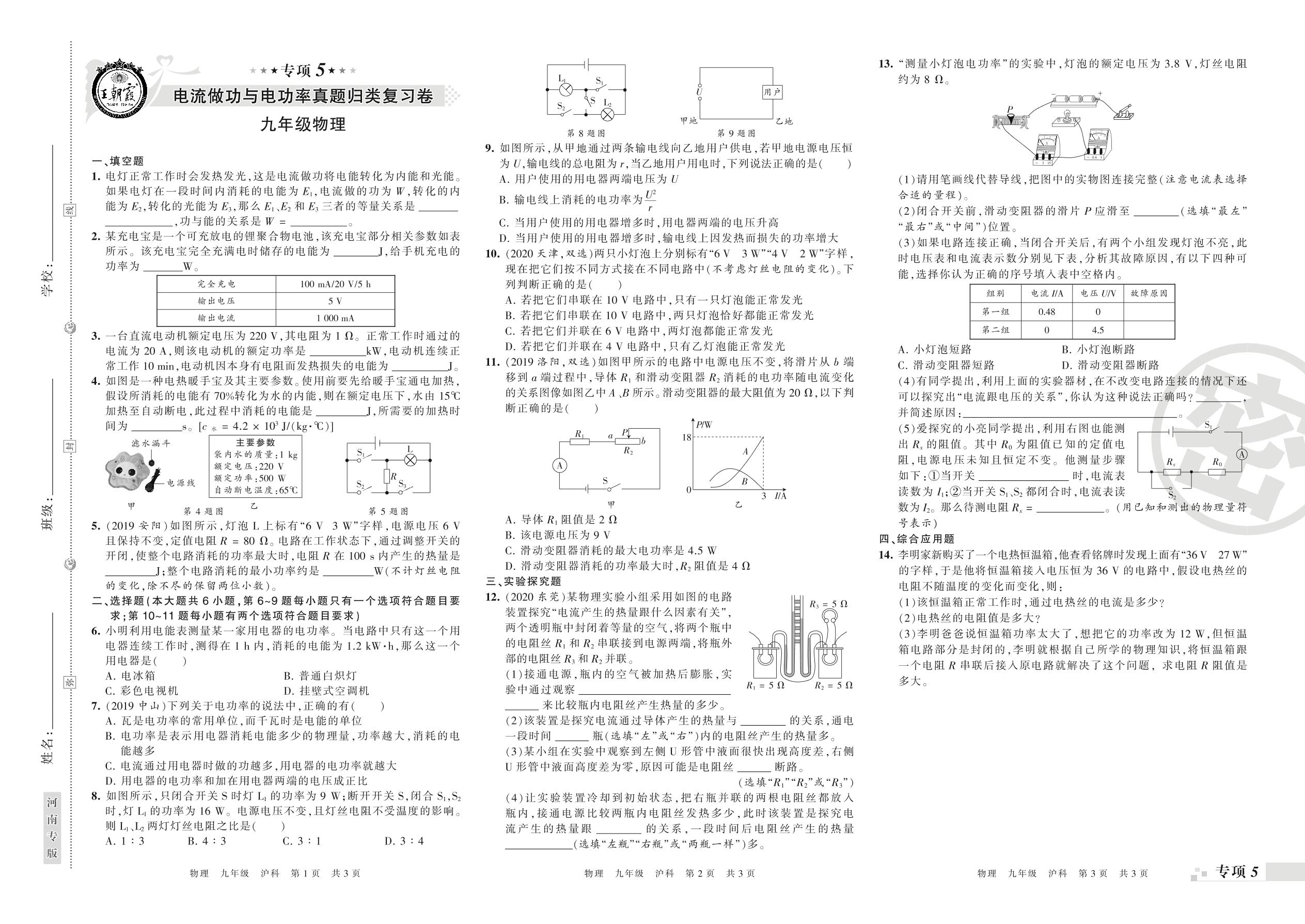 王朝霞期末专项卷——电流做功与电功率、电与磁真题归类复习九年级上册物理(沪科版)【0】