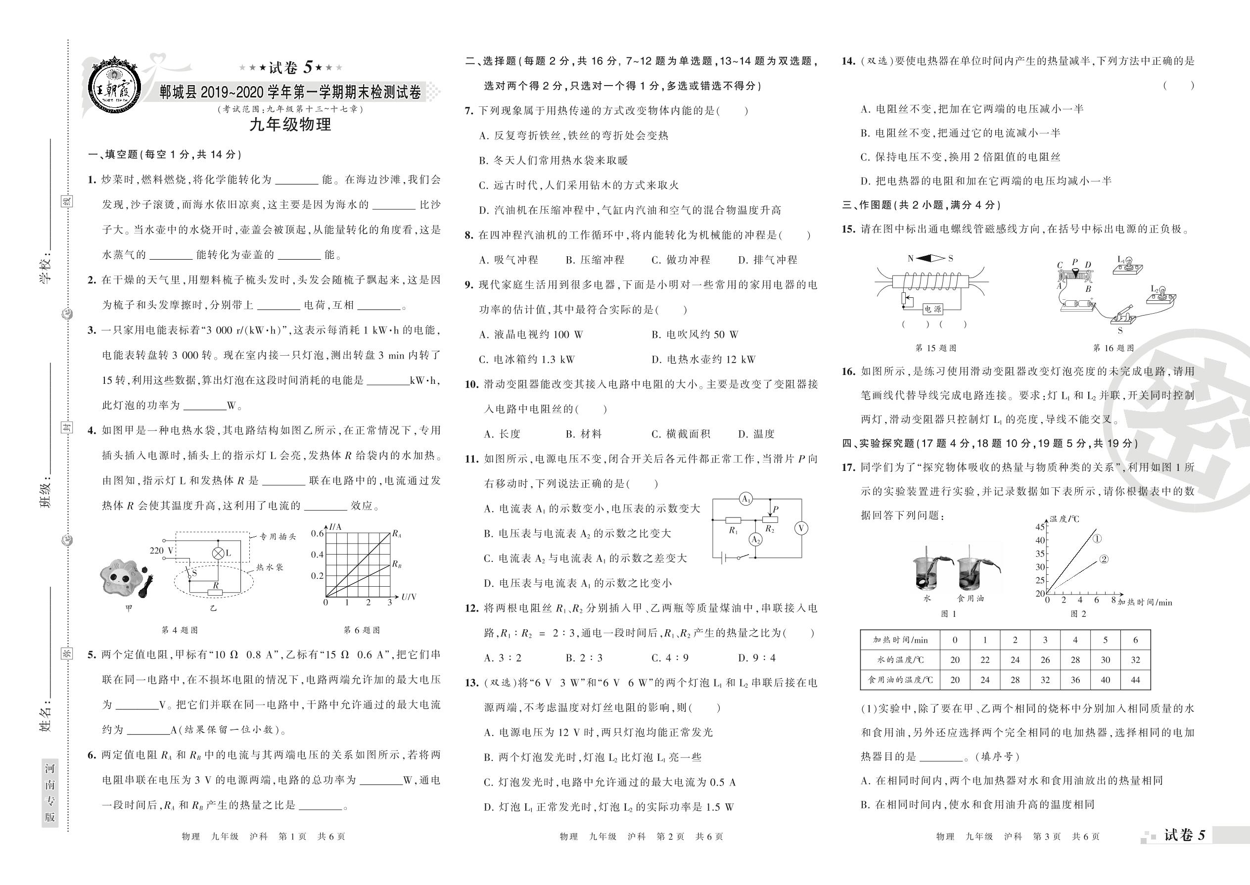 2019-2020学年第一学期周口市郸城县九年级物理试卷(沪科版)【5】