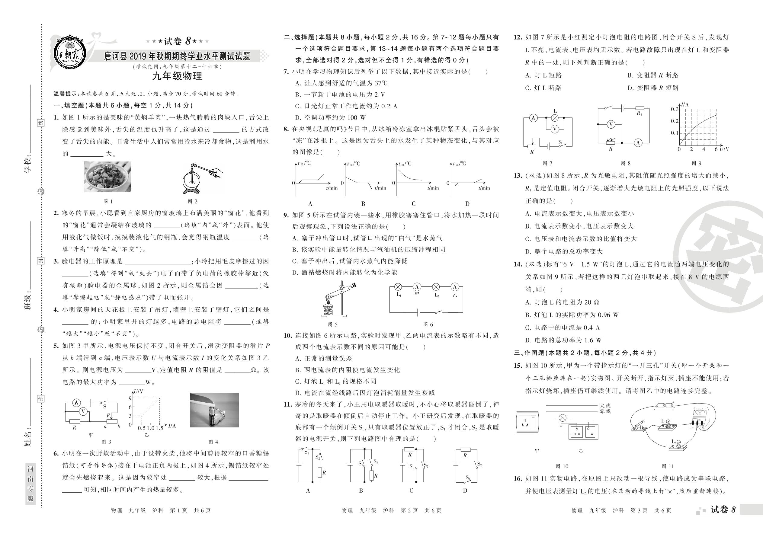 2019-2020学年第一学期南阳市唐河县九年级物理试卷(沪科版)【8】