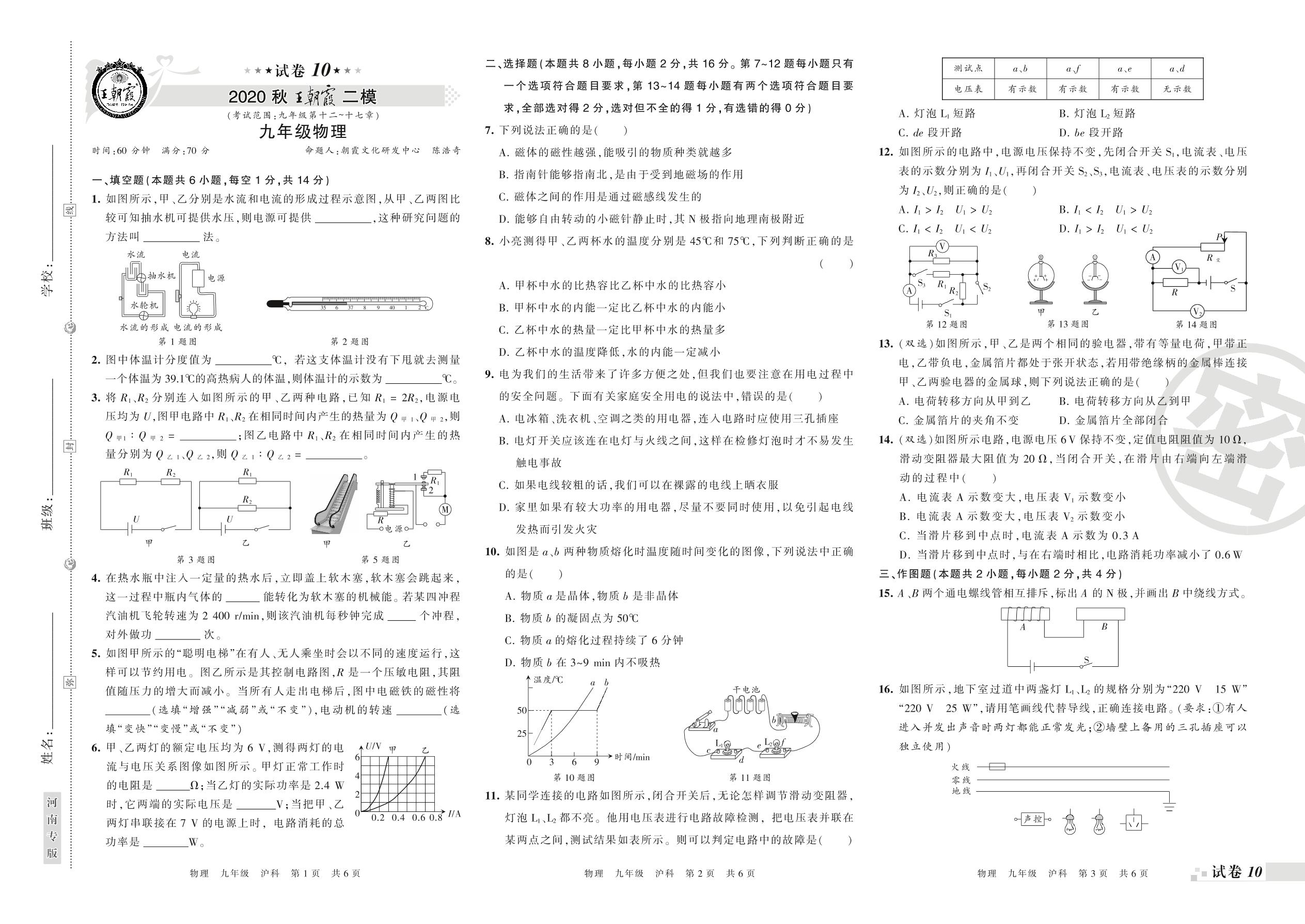 2020-2021学年第一学期王朝霞期末模拟卷九年级物理(沪科版)_R21081183743【10】
