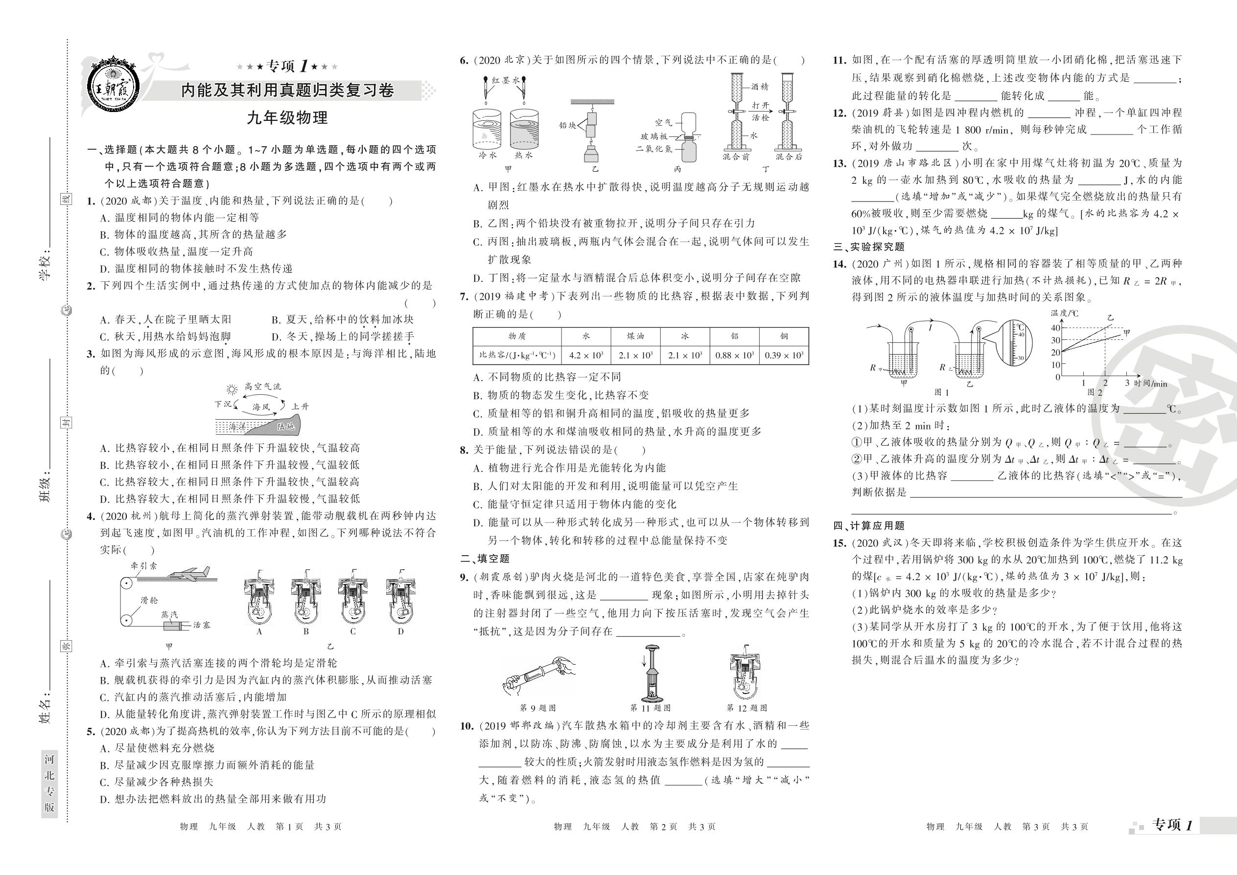 九年级物理人教版上册专项卷