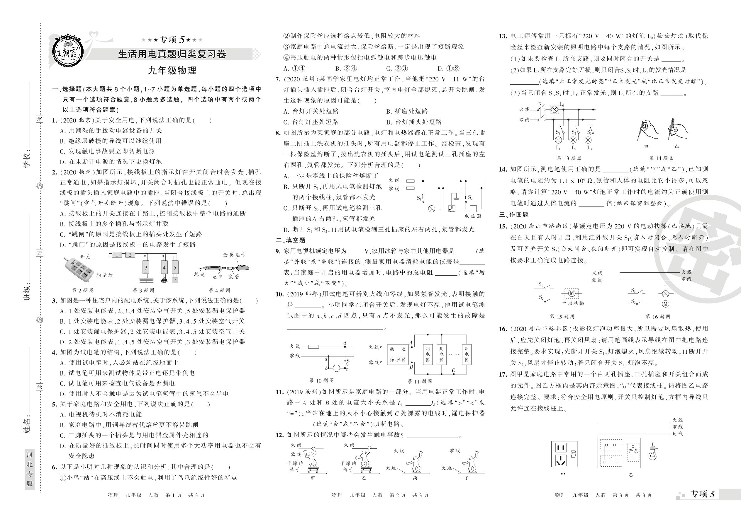 王朝霞期末专项卷——生活用电、电与磁真题归类复习九年级上册物理(人教版)【0】