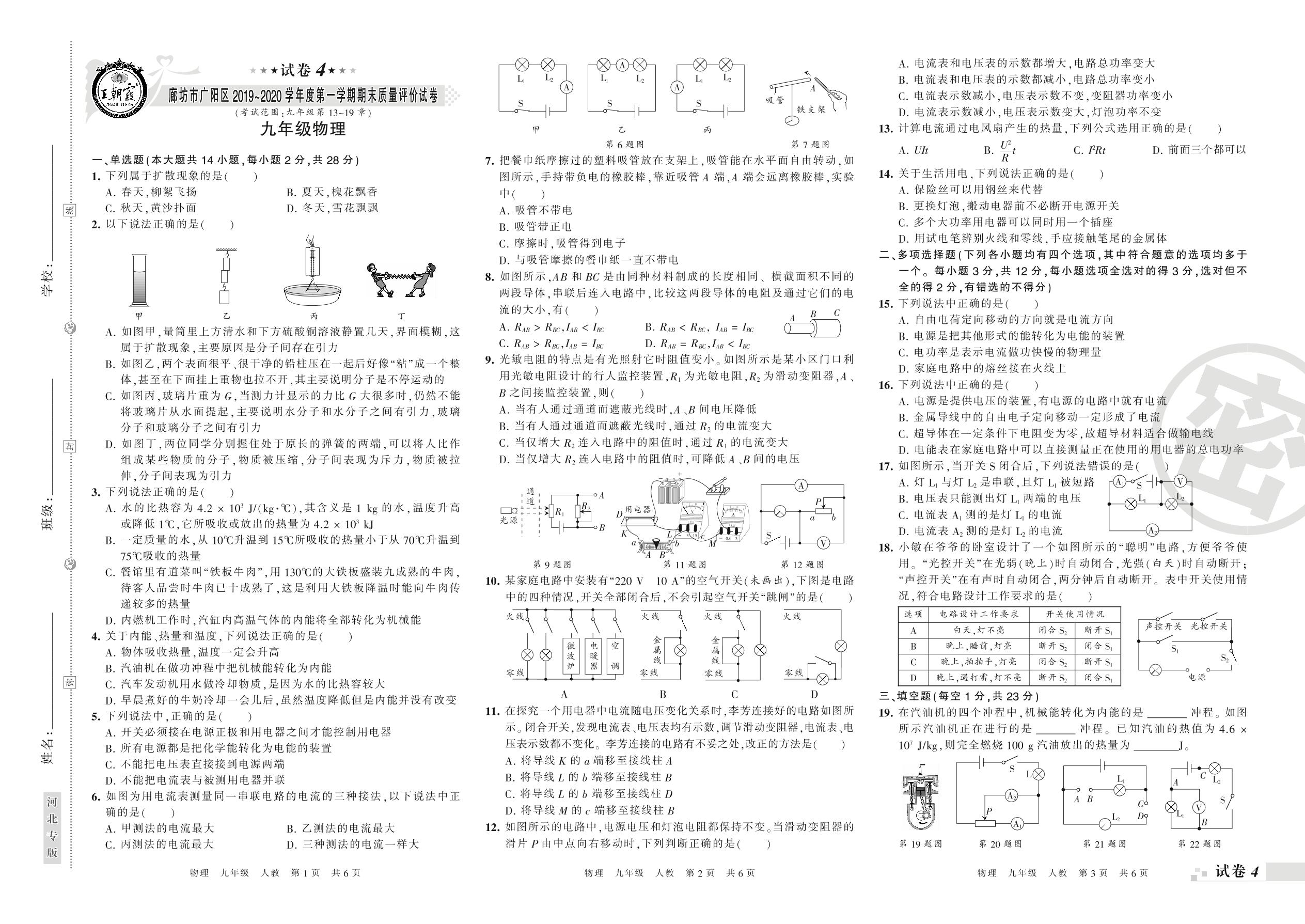 2019-2020学年第一学期廊坊市广阳区九年级物理试卷(人教版)【4】