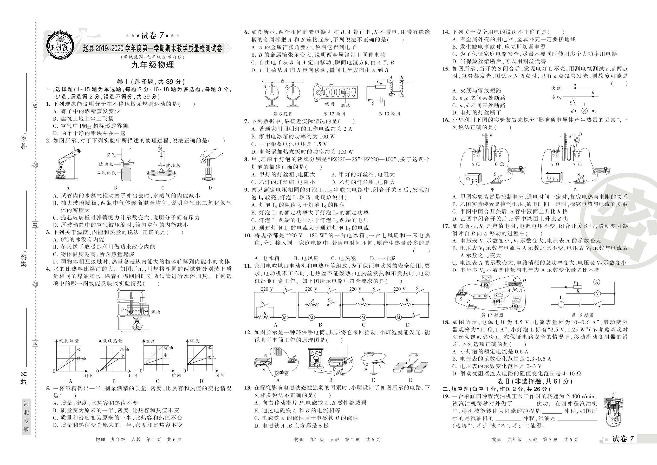 2019-2020学年第一学期石家庄市赵县九年级物理试卷(人教版)【7】