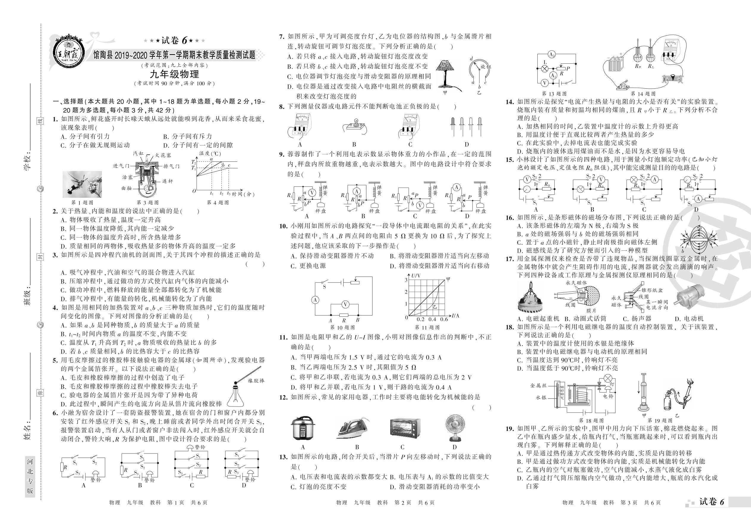 2019-2020学年第一学期邯郸市馆陶县九年级物理试卷(教科版)【6】