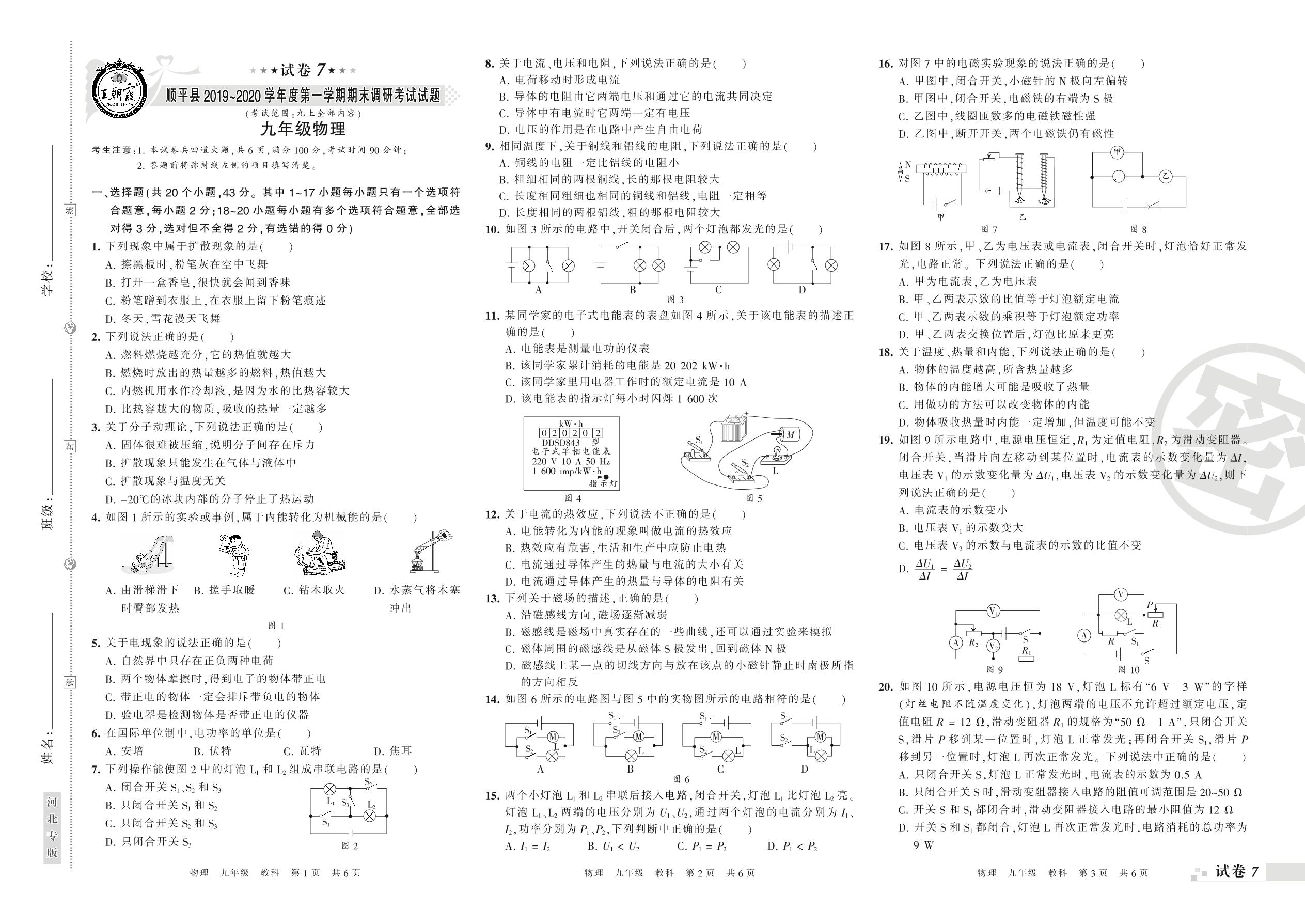 2019-2020学年第一学期保定市顺平县九年级物理试卷(教科版)【7】