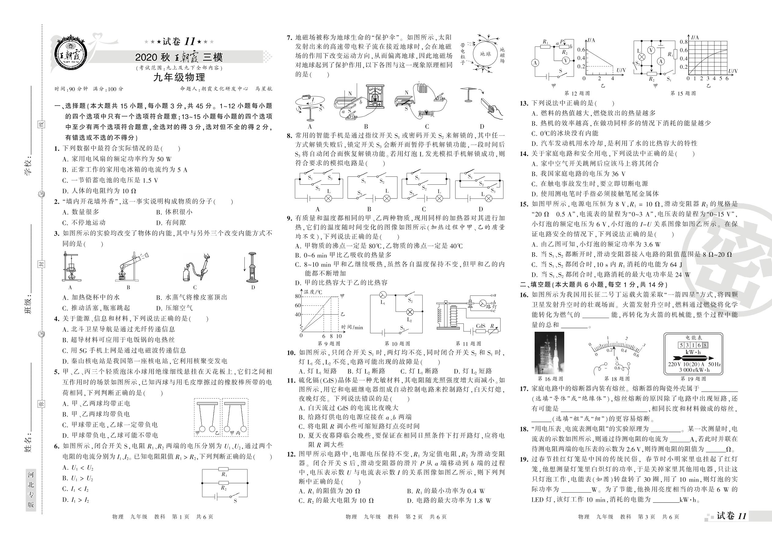 王朝霞期末模拟卷九年级上册物理(教科版)_R21081184422【11】