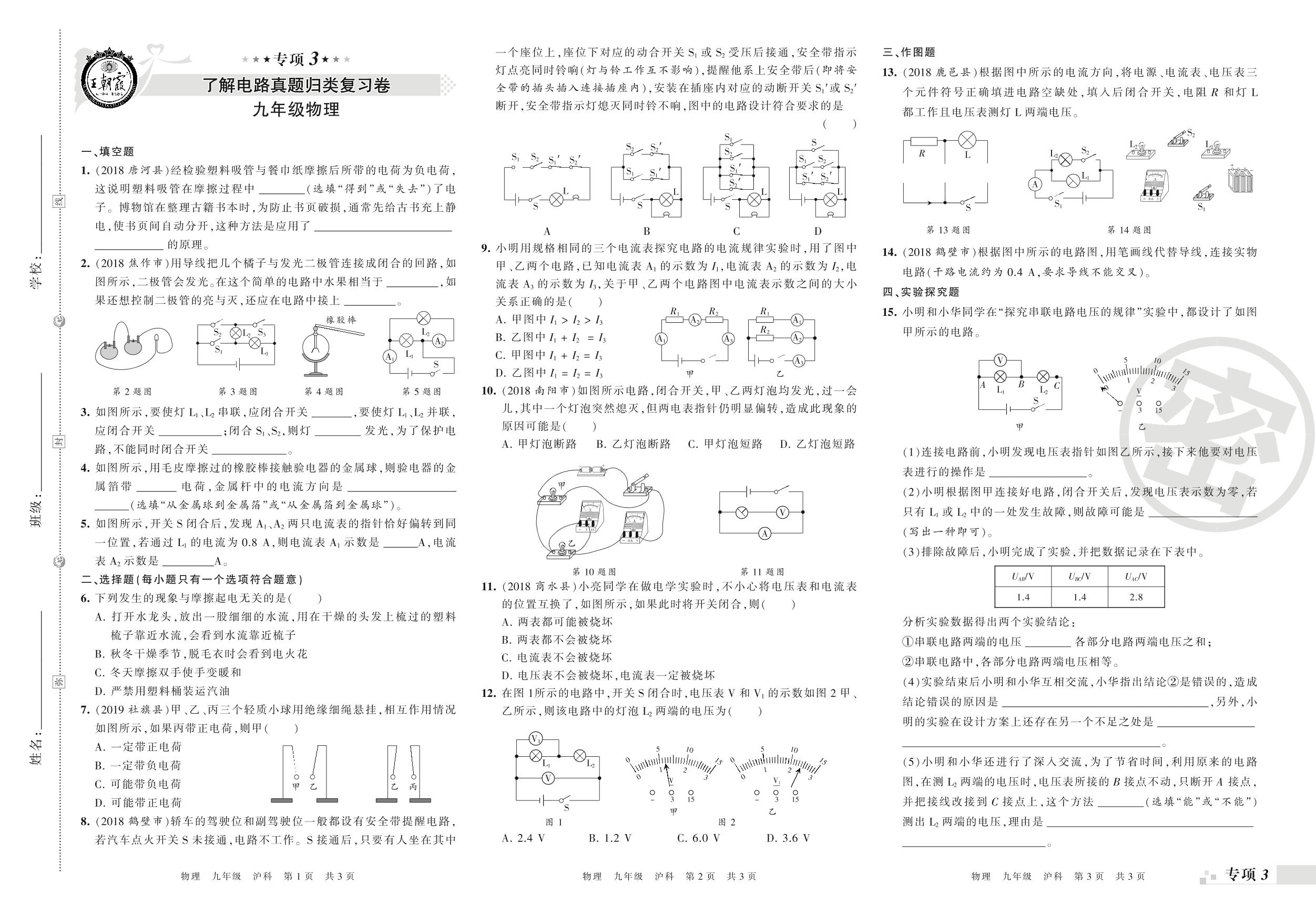 王朝霞期末专项卷——了解电路、探究电路真题归类复习九年级上册物理(沪科版)_R21081184439【0】