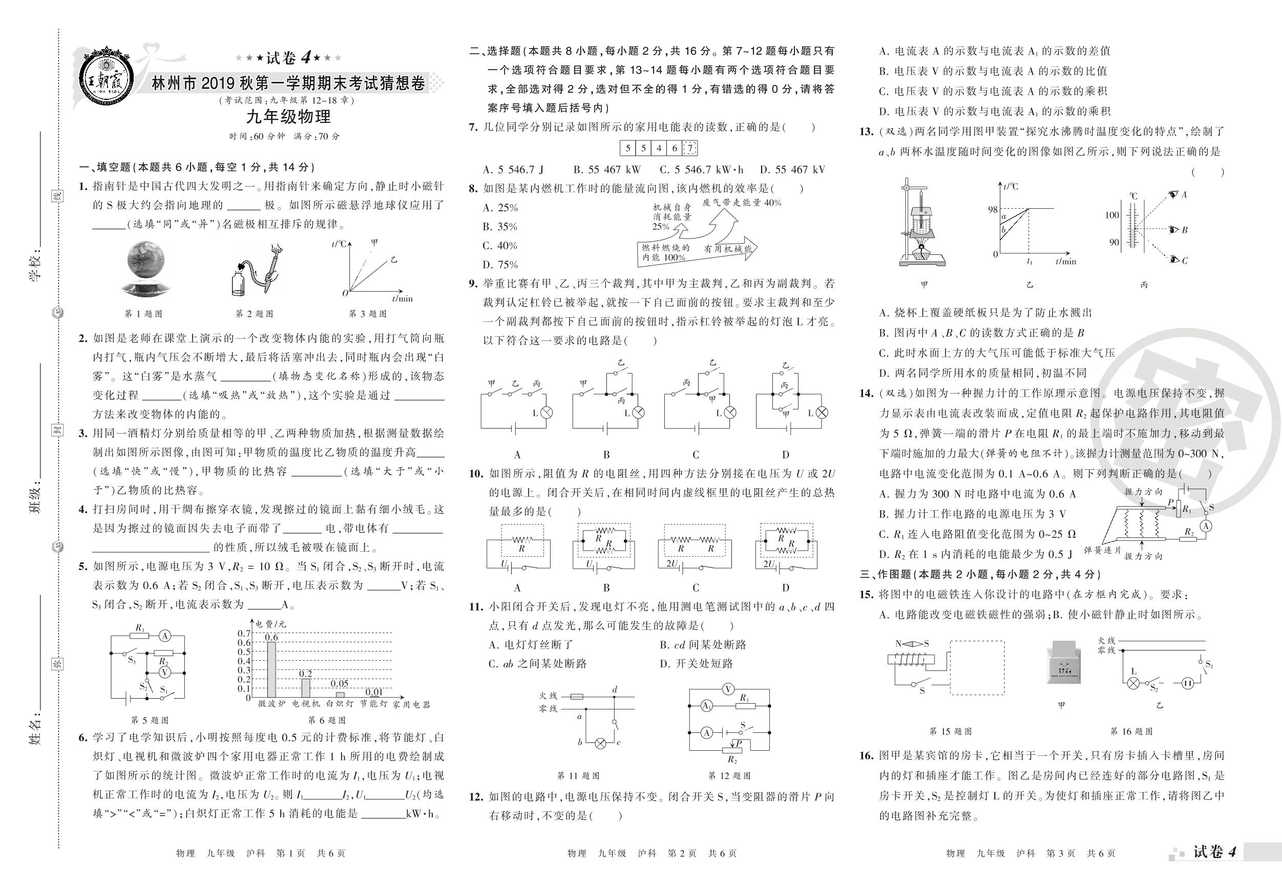 2018-2019学年第一学期林州市猜想卷九年级物理试卷(沪科版)【4】