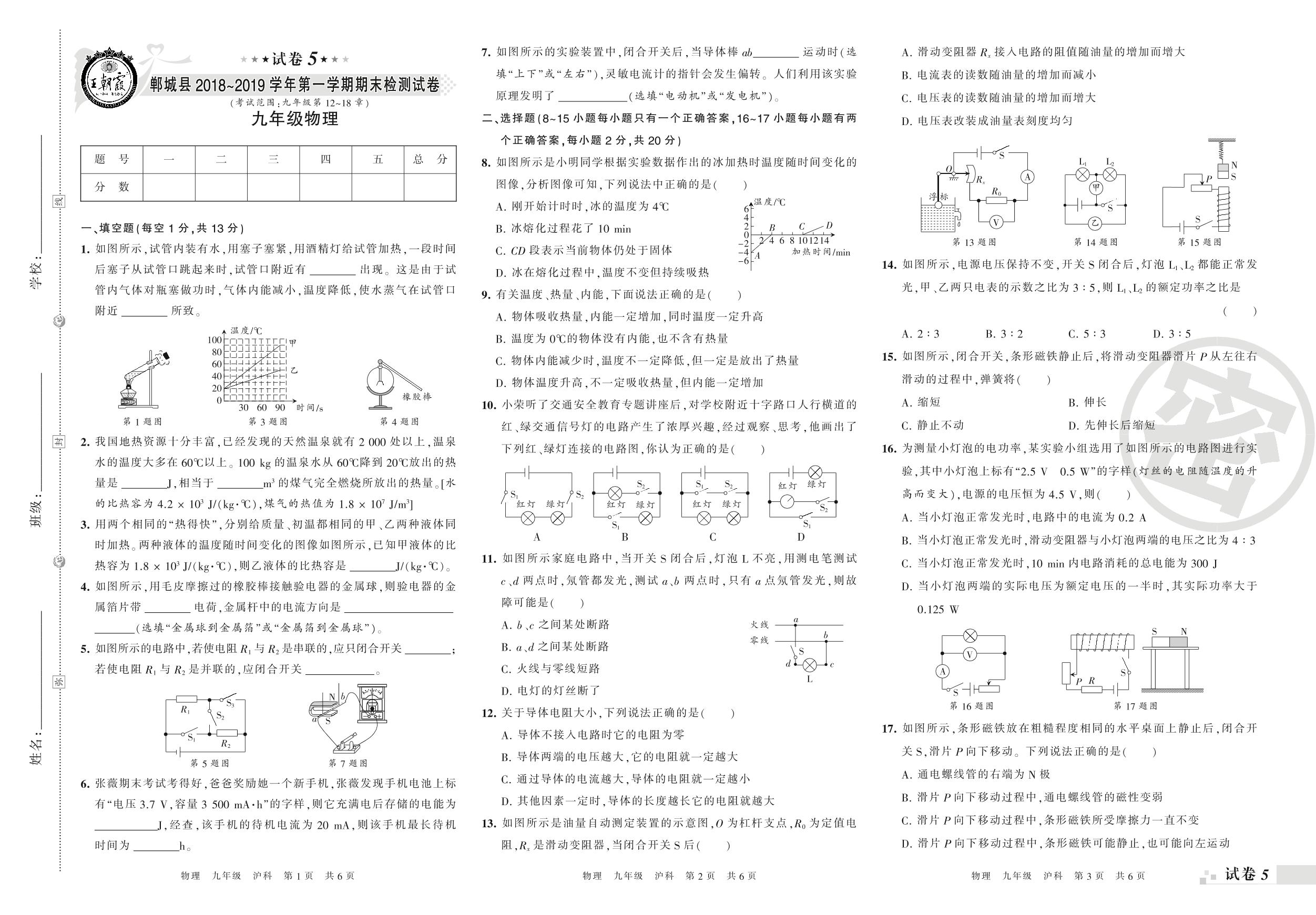 2018-2019学年第一学期周口市郸城县九年级物理试卷(沪科版)【5】