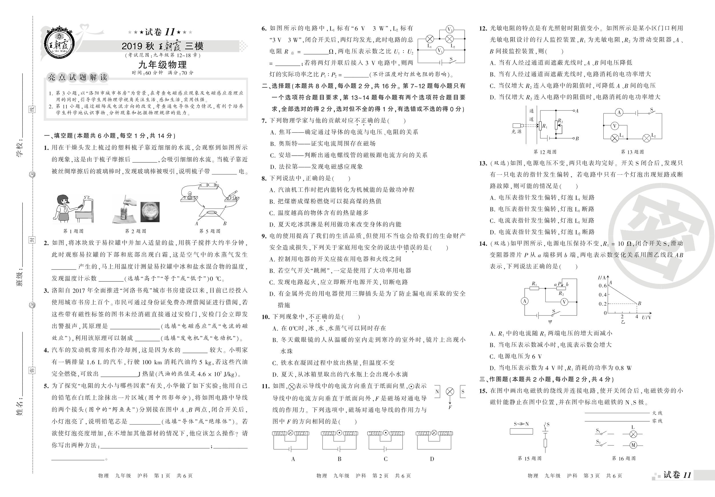 2019-2020学年第一学期王朝霞期末模拟卷九年级物理(沪科版)_R21081184630【11】