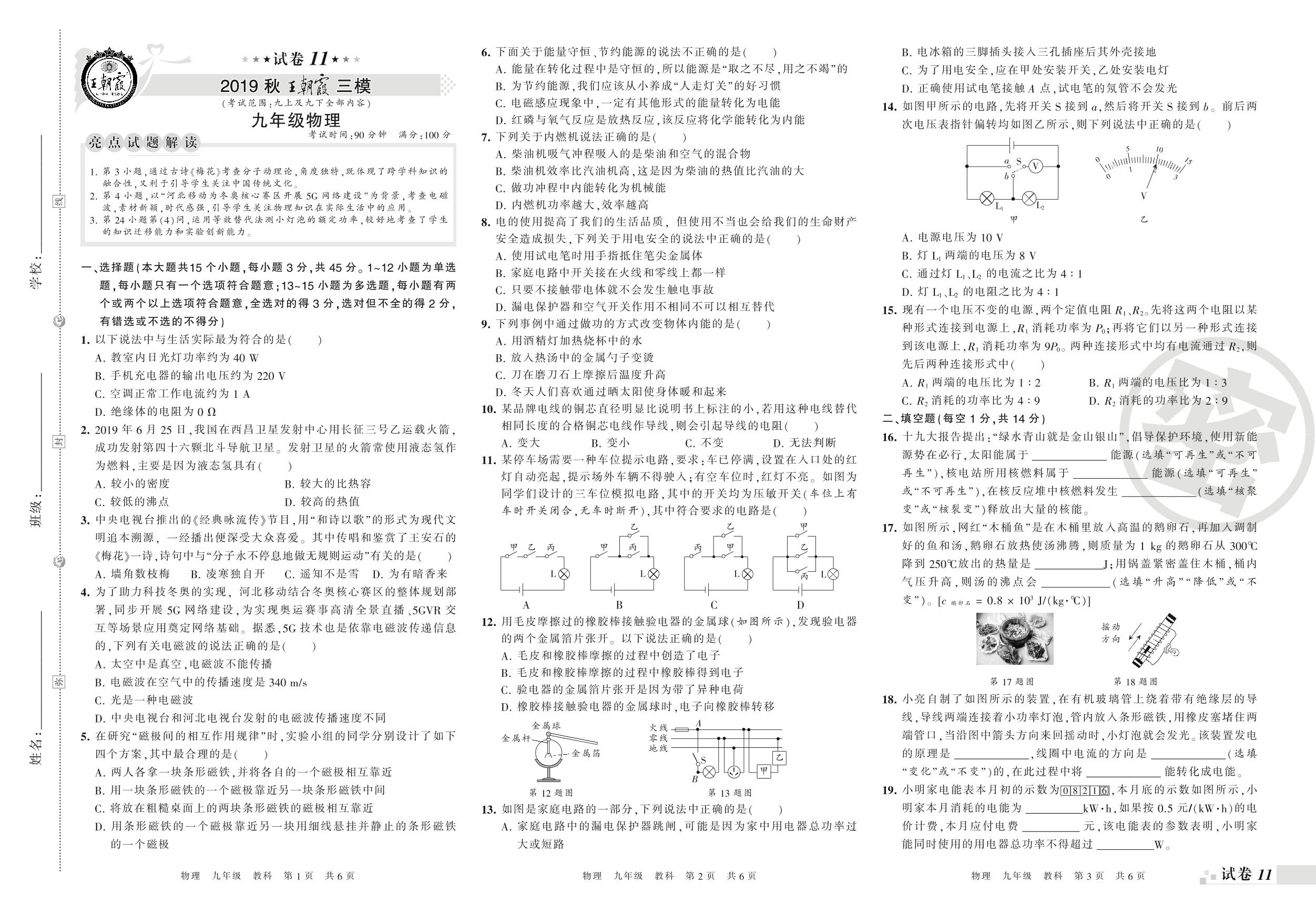 王朝霞期末模拟卷九年级上册物理(教科版)_R21081184906【11】