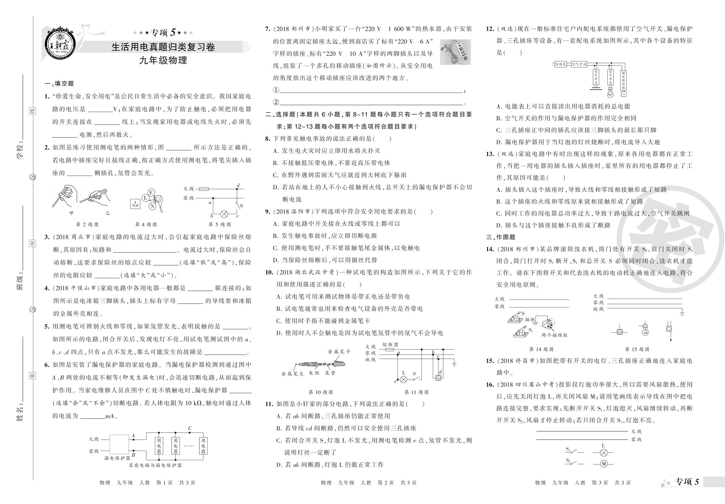 王朝霞期末专项卷——生活用电、电与磁真题归类复习九年级上册物理(人教版)_R21081184940【0】