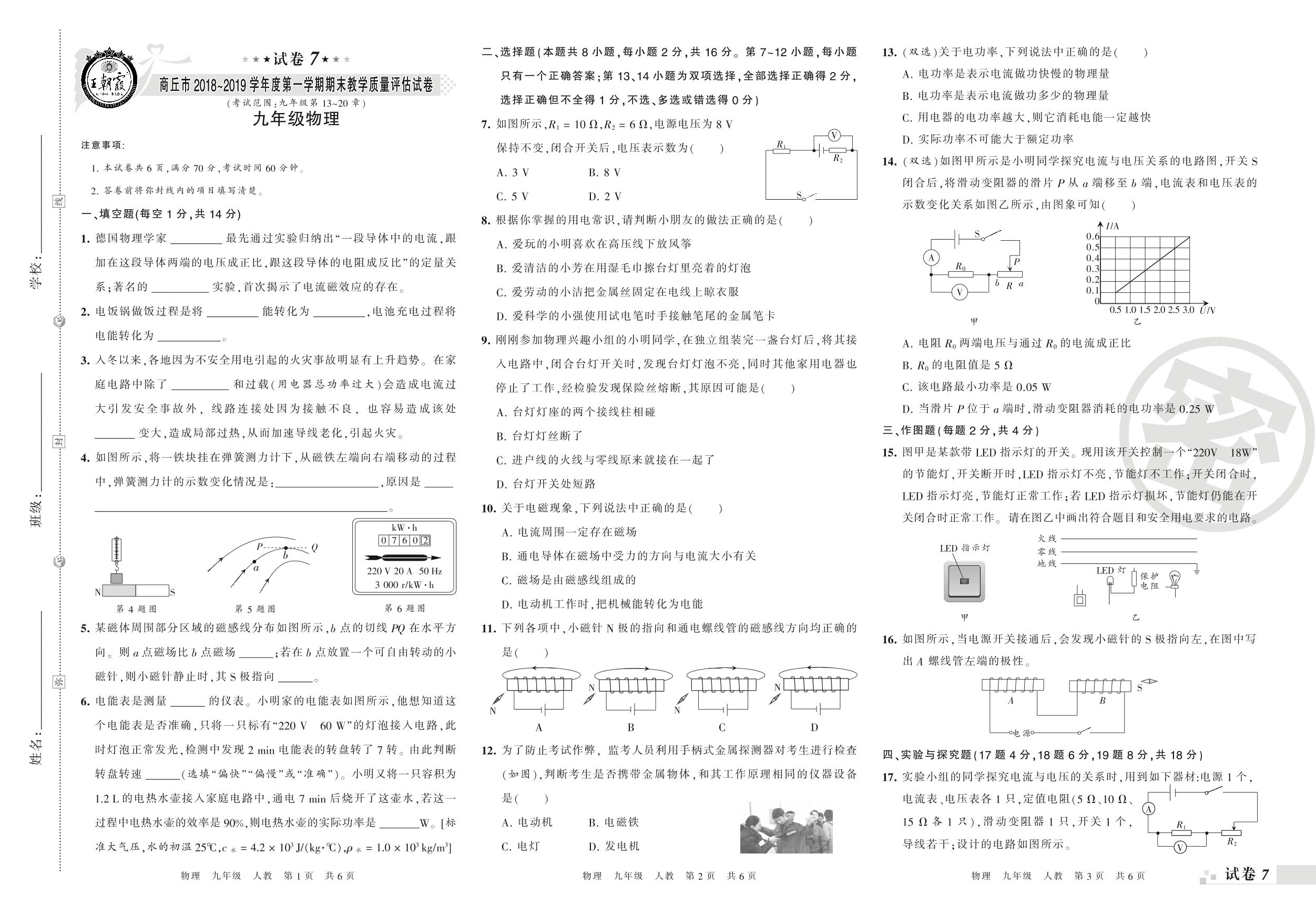 2018-2019学年第一学期商丘市九年级物理试卷(人教版)【7】