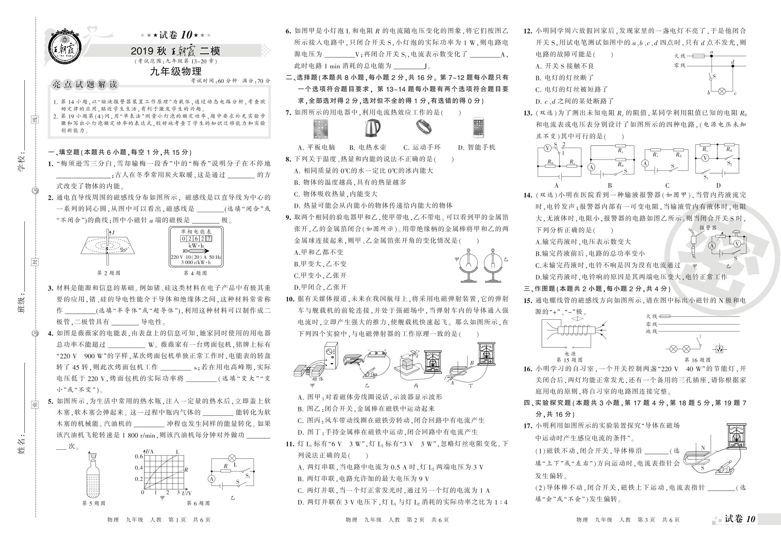 2019-2020学年第一学期王朝霞期末模拟卷九年级物理(人教版)_R21081185101【10】