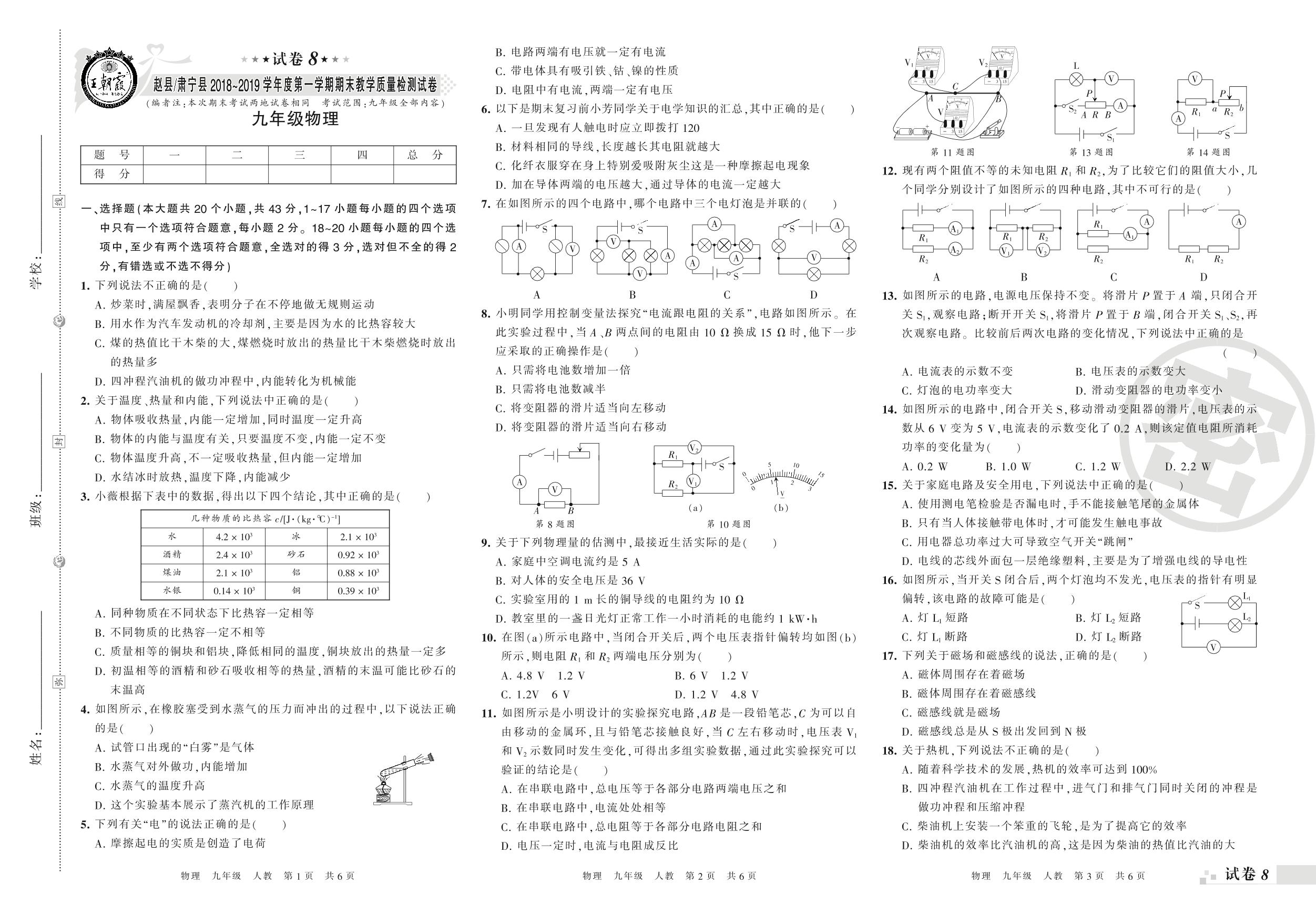 2018-2019学年第一学期石家庄市赵县、肃宁县九年级物理试卷(人教版)【8】