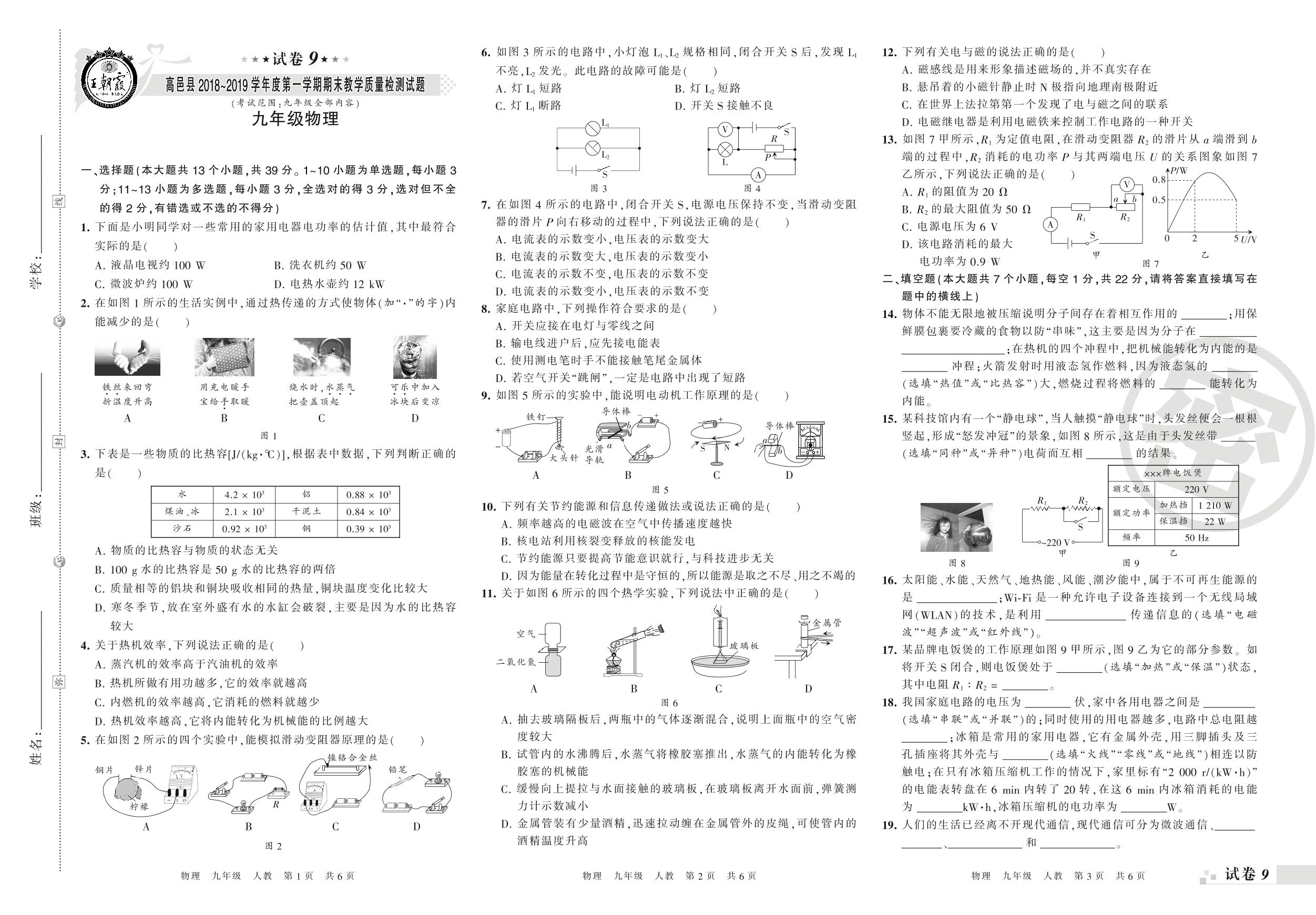2018-2019学年第一学期石家庄市高邑县九年级物理试卷(人教版)【9】
