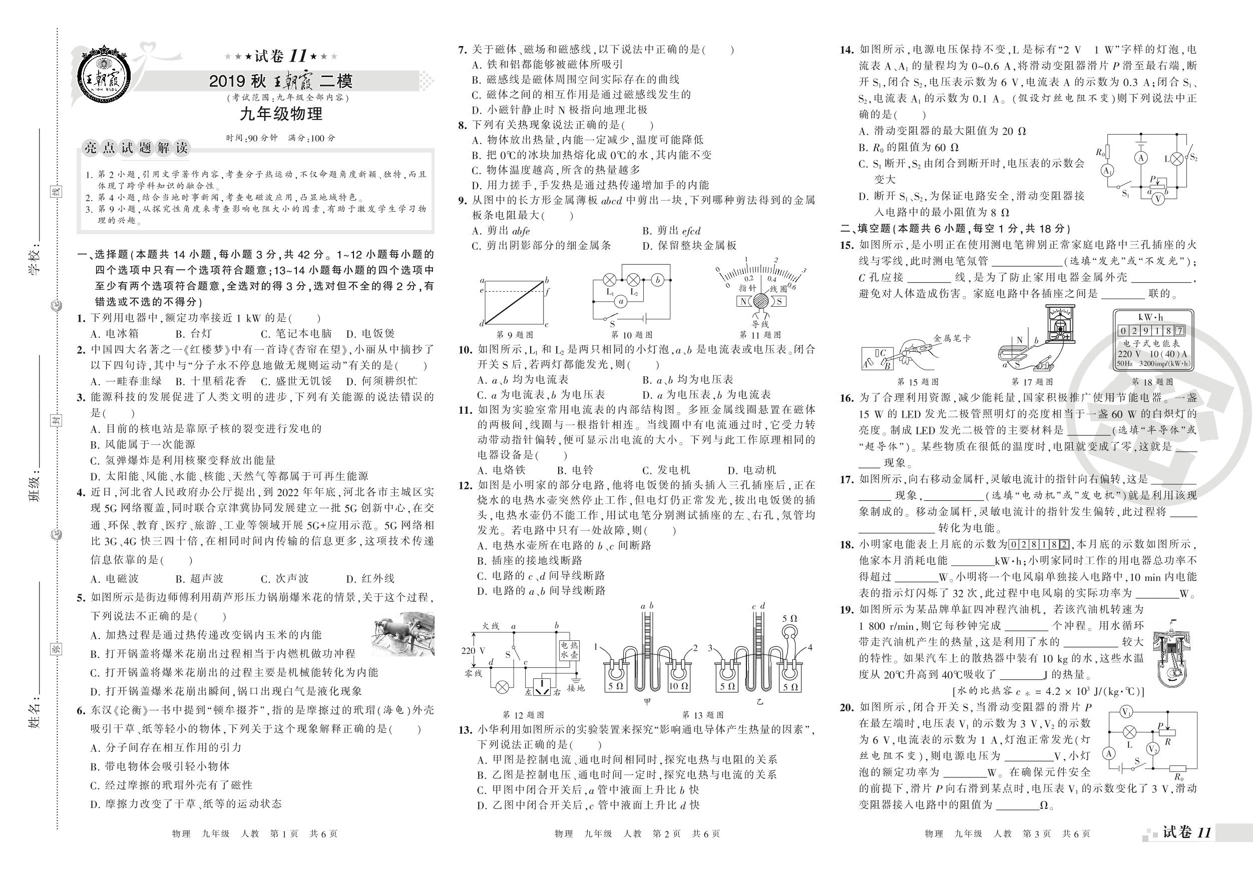 2019-2020学年第一学期王朝霞期末模拟卷九年级物理(人教版)_R21081185312【11】