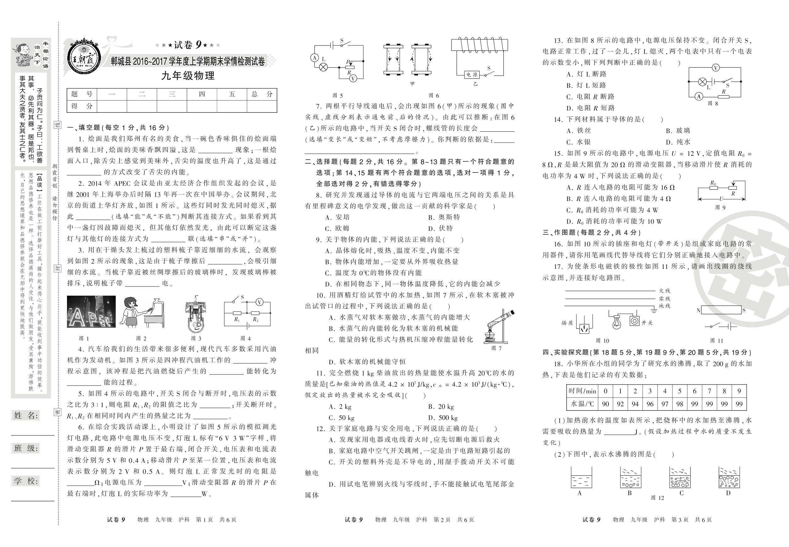 九年级物理沪科版全一册期末卷