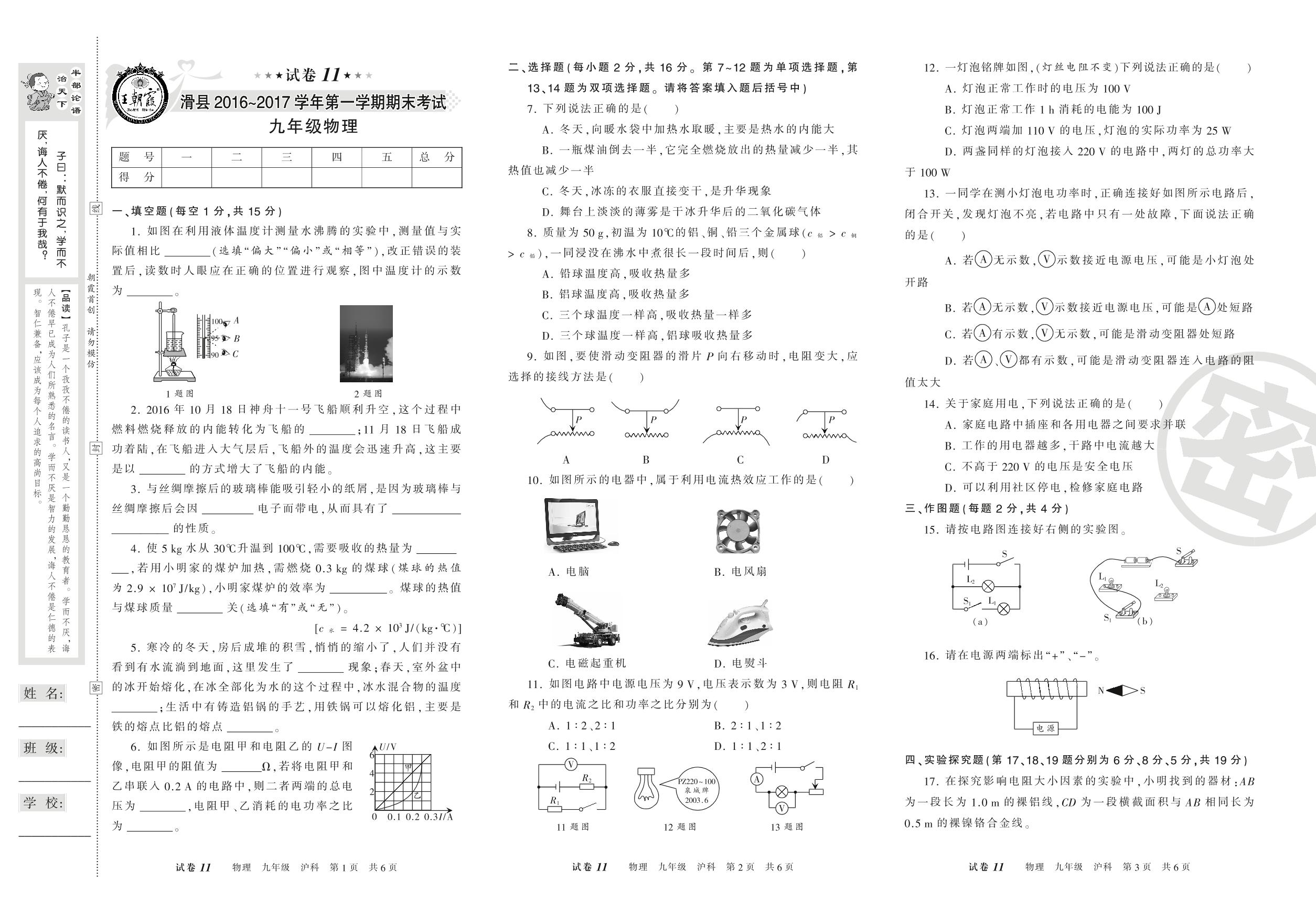 2016-2017学年第一学期安阳市滑县九年级物理试卷(沪科版)【11】