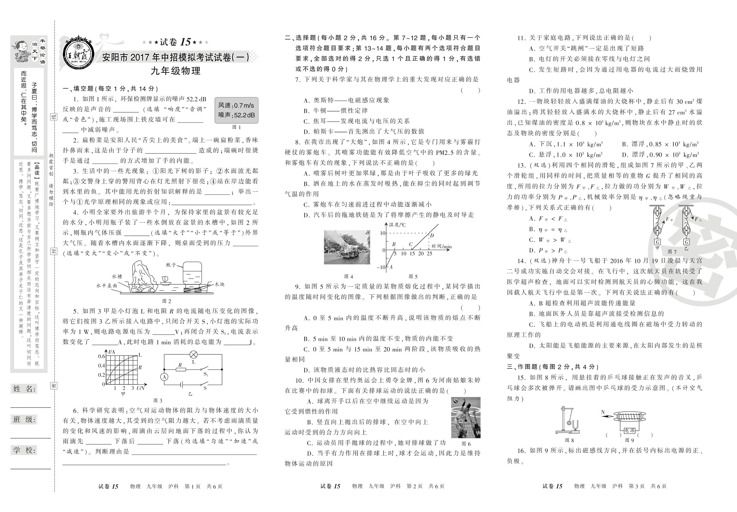 2016-2017学年第一学期安阳市一模九年级物理试卷(沪科版)【15】