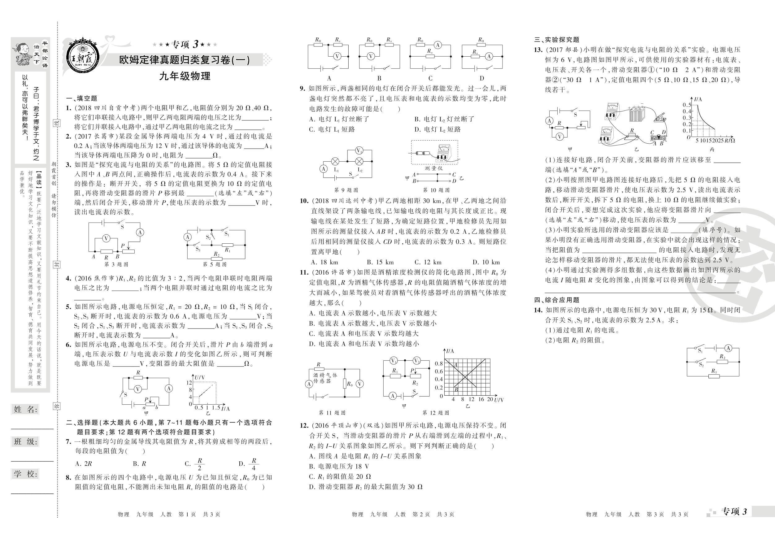 王朝霞期末专项卷——欧姆定律(一)(二)真题归类复习卷九年级上册物理(人教版)_R21081185741【0】