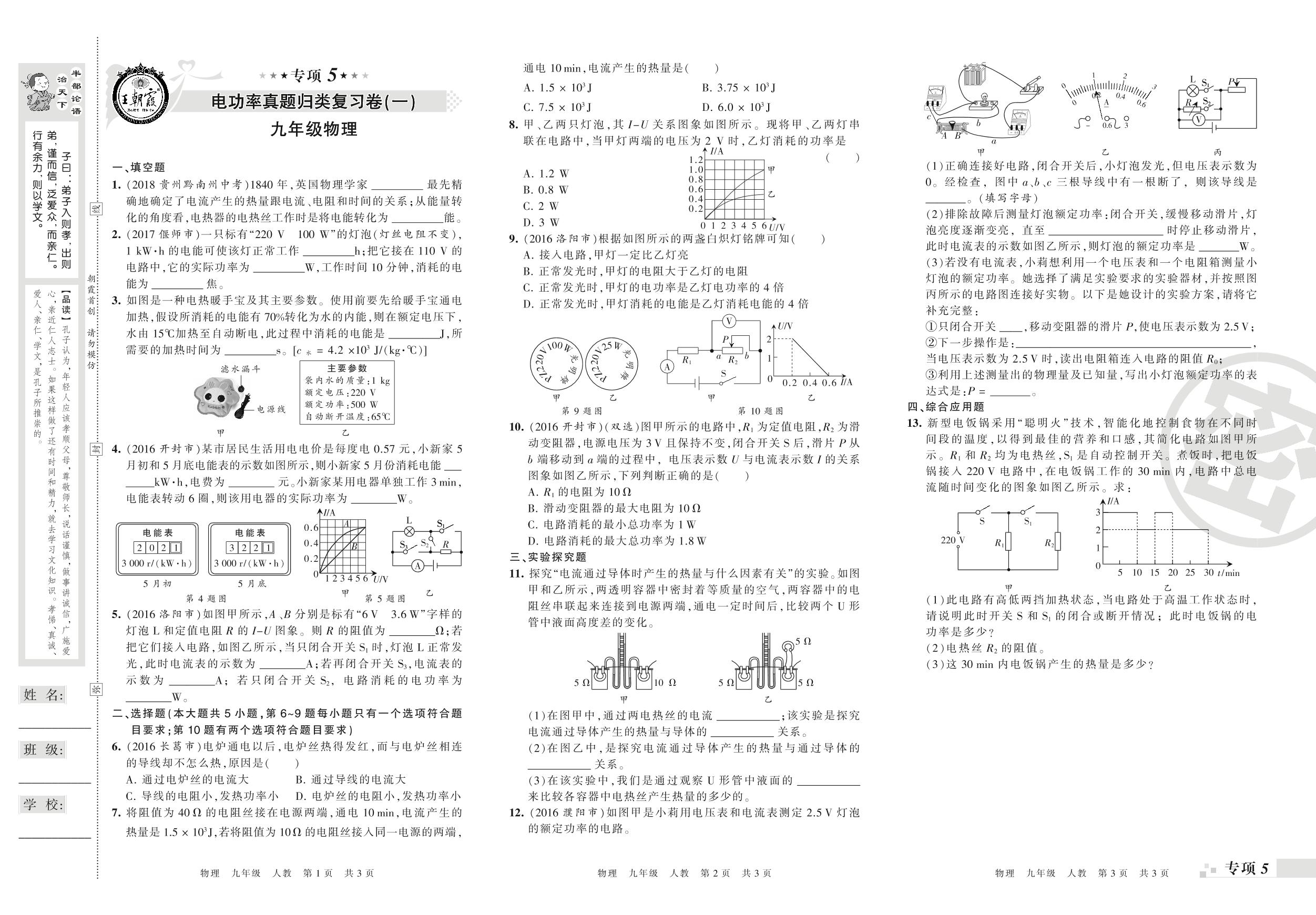 王朝霞期末专项卷——电功率(一)(二)真题归类复习卷九年级上册物理(人教版)_R21081185749【0】