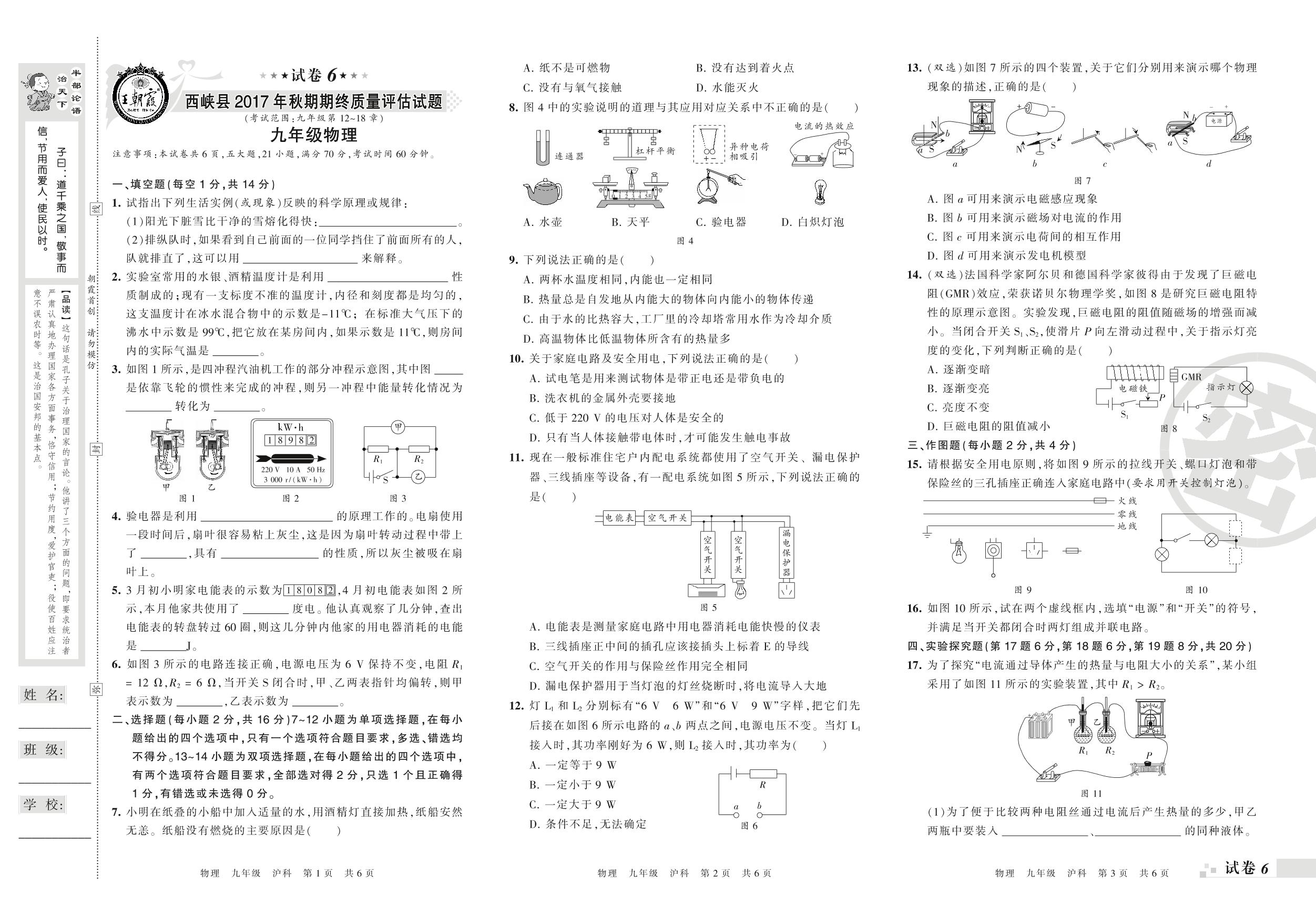 2017-2018学年第一学期南阳市西峡县九年级物理试卷(沪科版)【6】