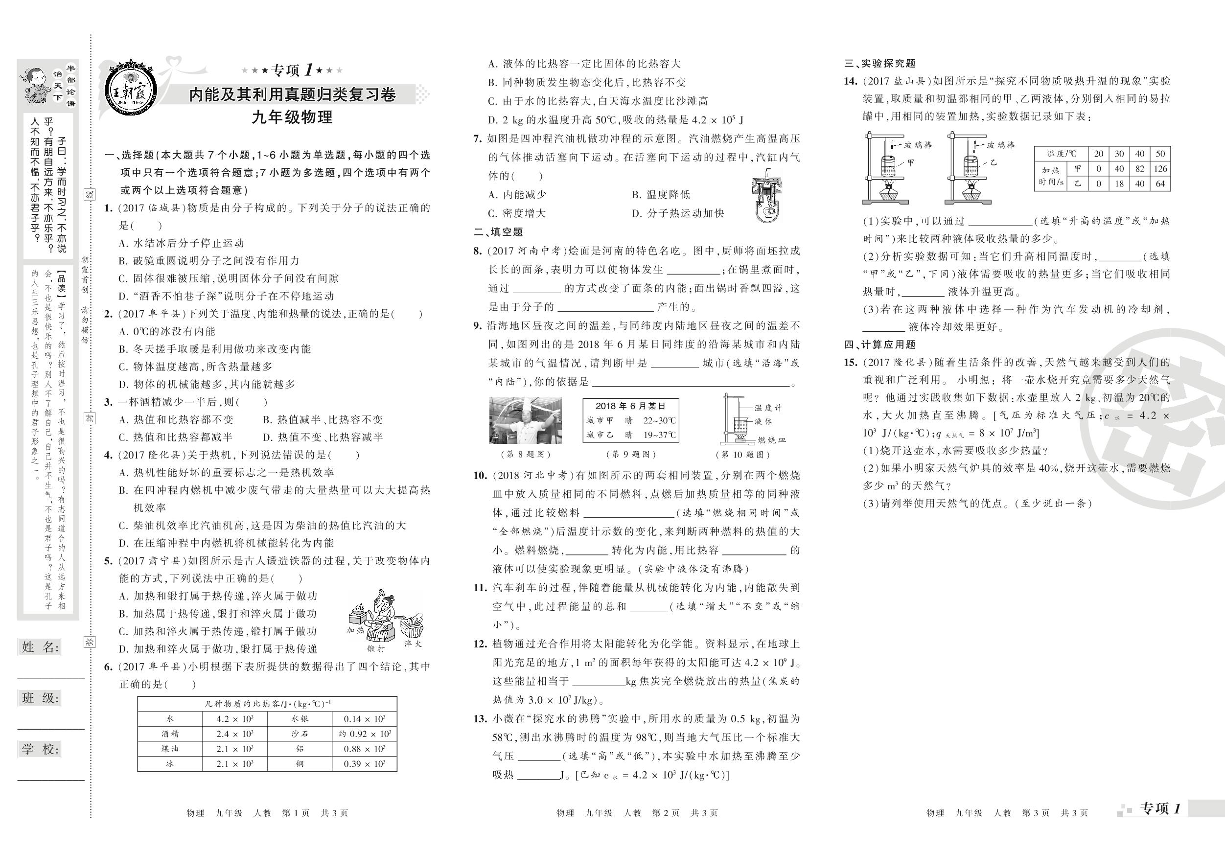 九年级物理人教版上册专项卷