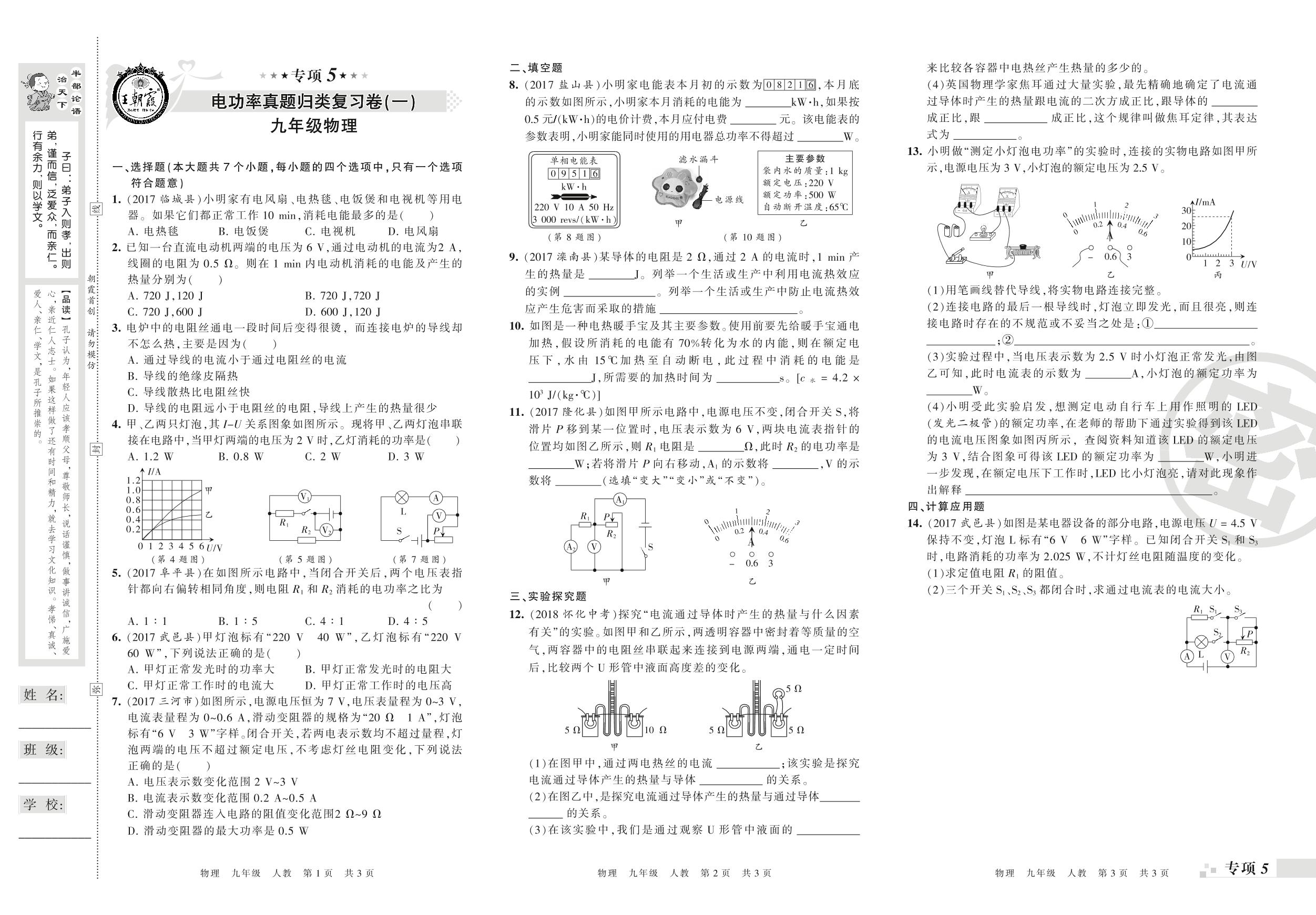 王朝霞期末专项卷——电功率(一)(二)真题归类复习卷九年级上册物理(人教版)_R21081190521【0】
