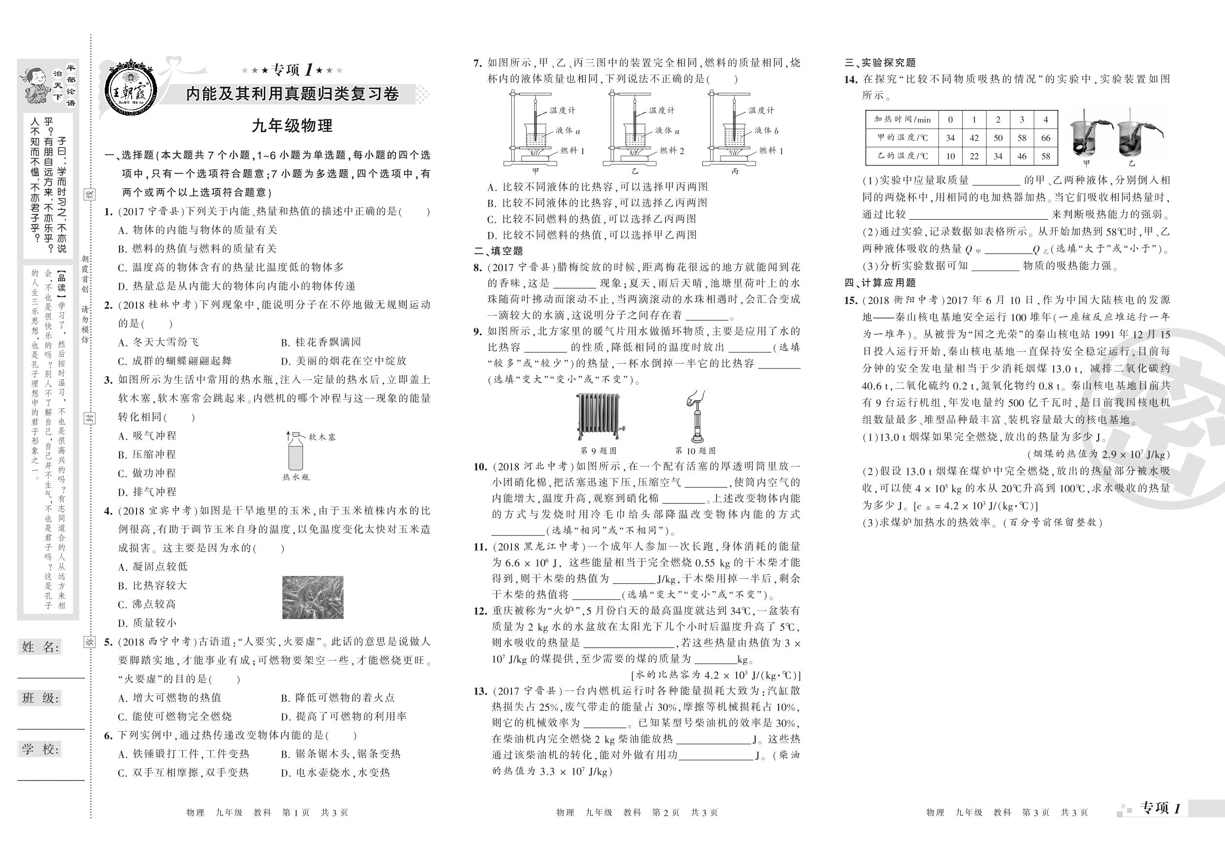 王朝霞期末专项卷——内能及其利用、简单电路真题归类复习卷九年级上册物理(教科版)_R21081191009【0】