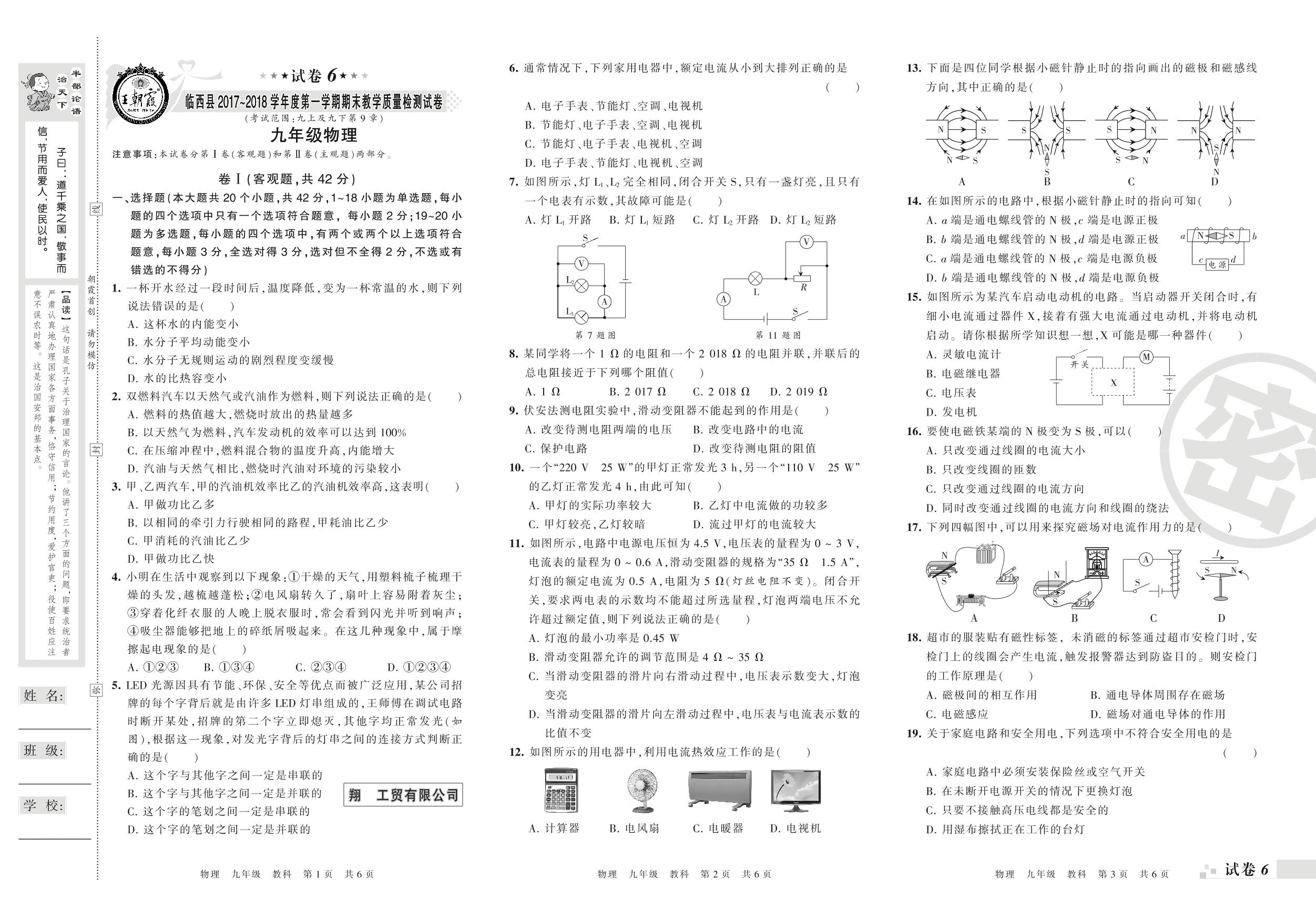 2017-2018学年第一学期邢台市临西县九年级物理试卷(教科版)【6】