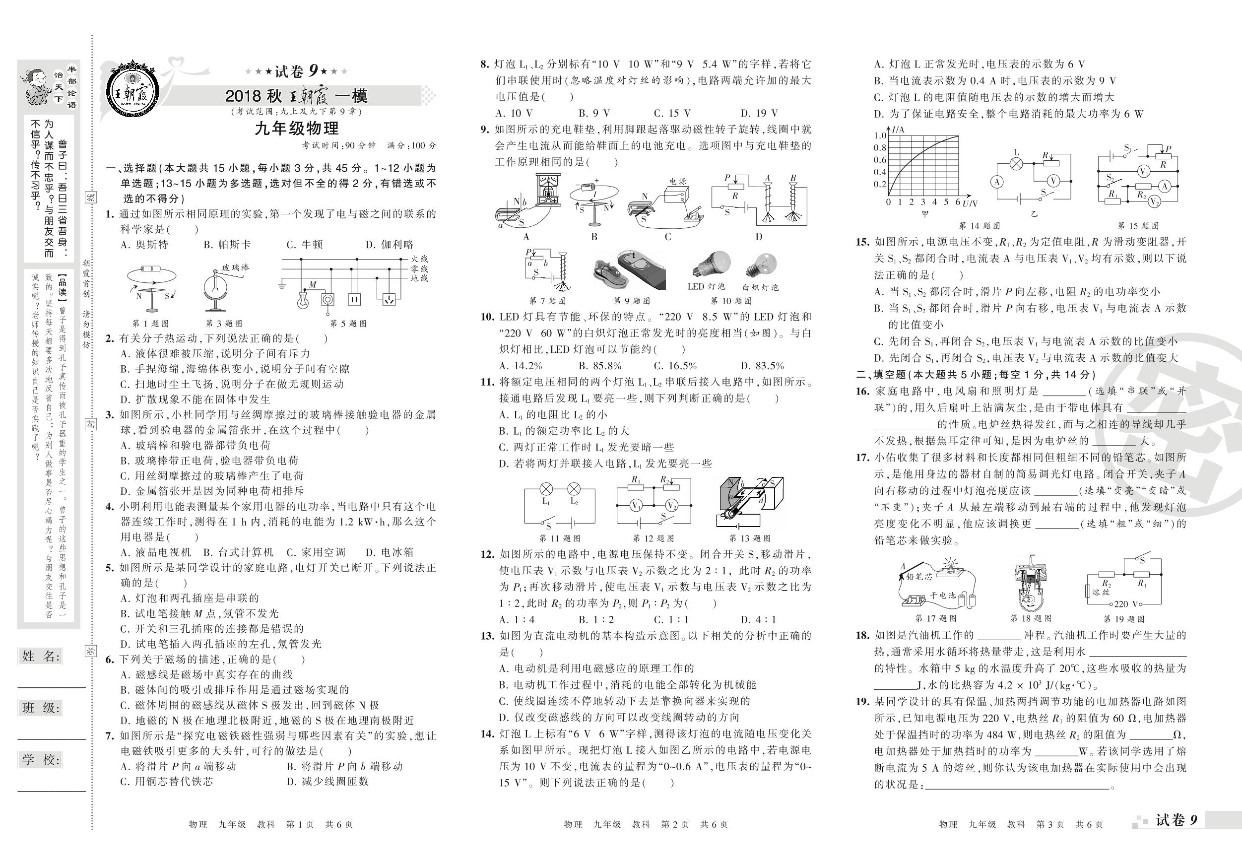 王朝霞期末模拟卷九年级上册物理(教科版)_R21081191136【9】