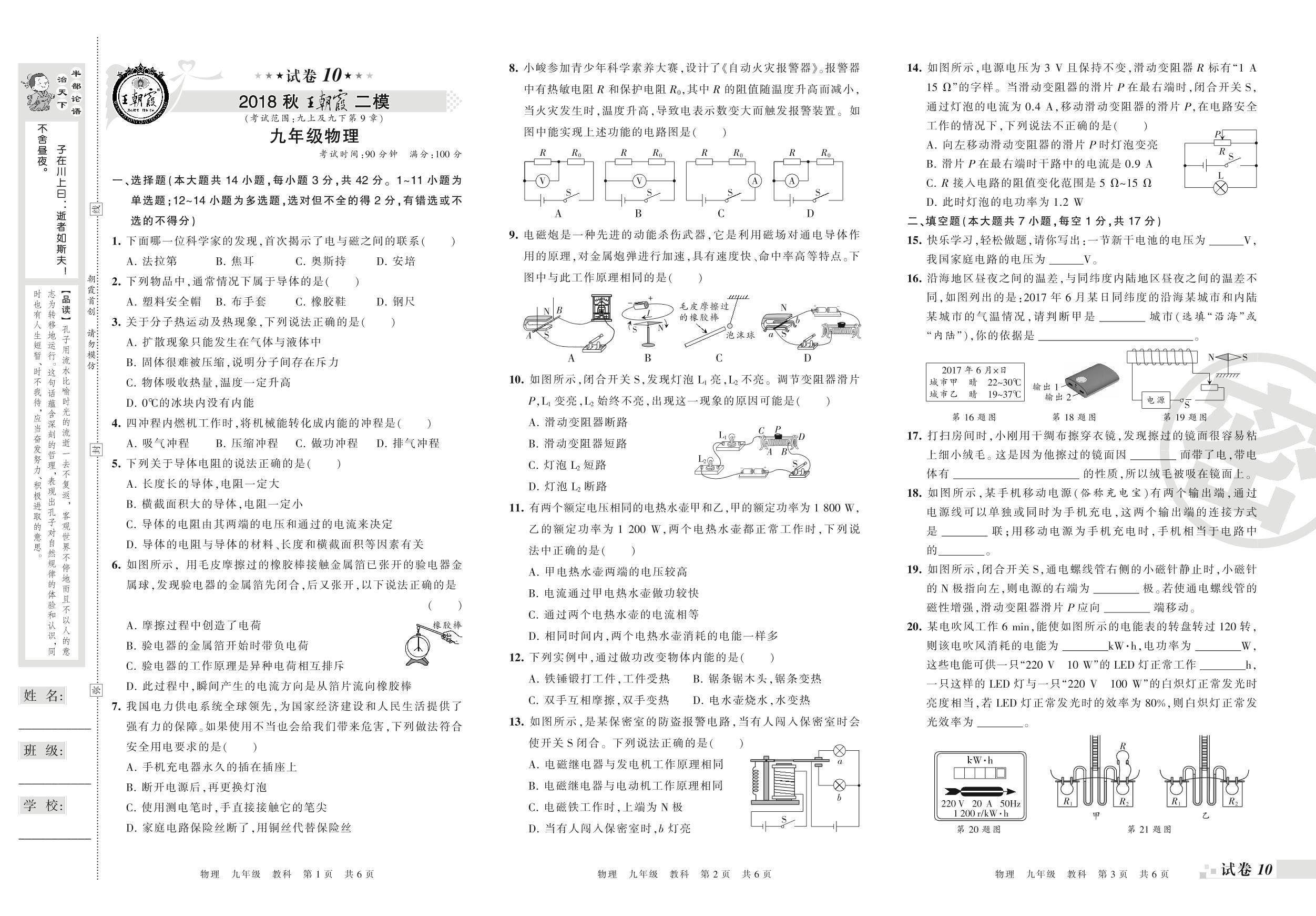 王朝霞期末模拟卷九年级上册物理(教科版)_R21081191145【10】