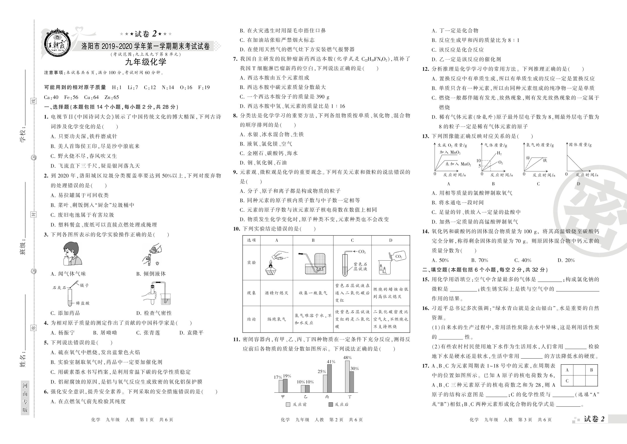 2019-2020学年第一学期洛阳市九年级化学试卷(人教版)【2】