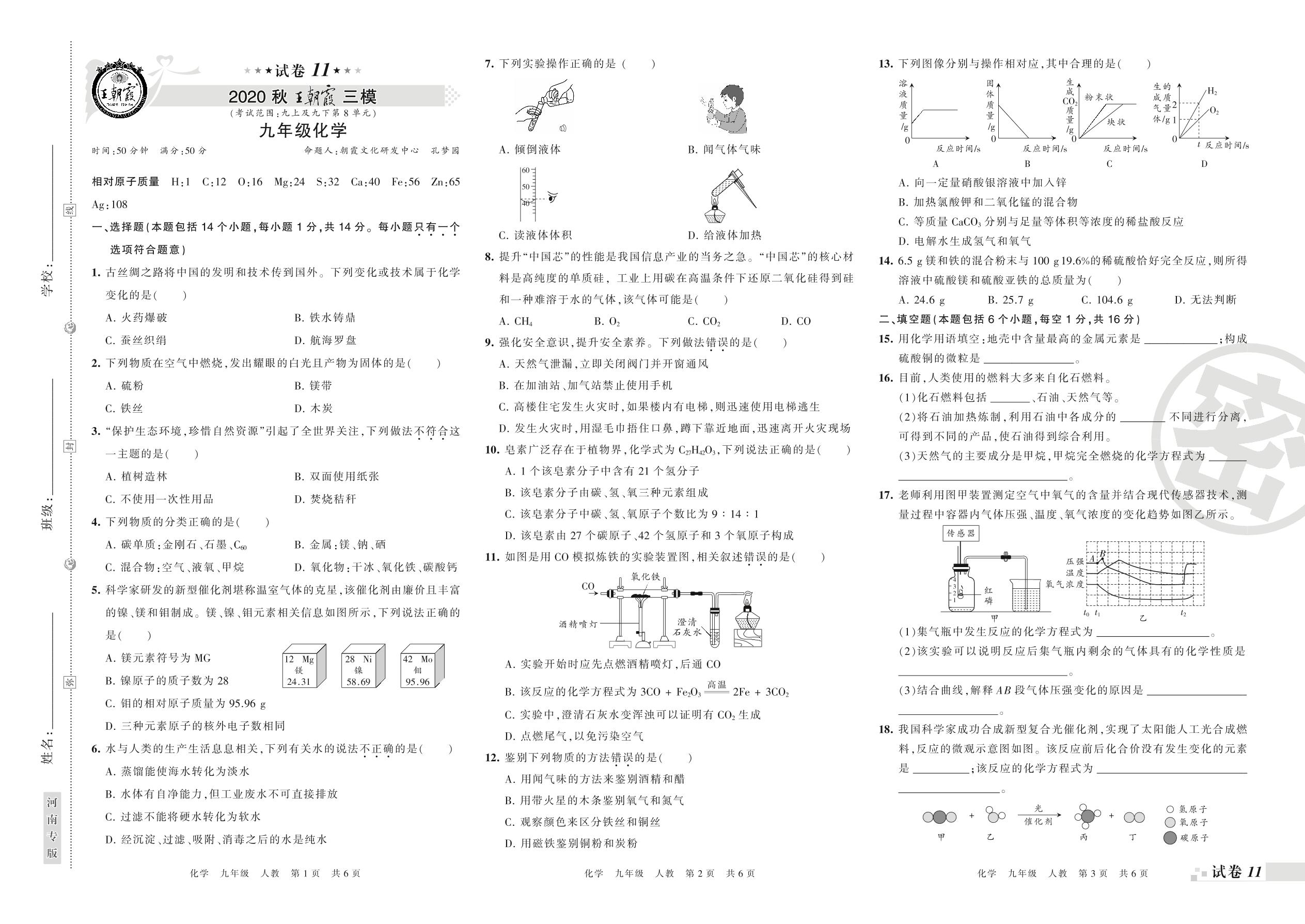 王朝霞期末模拟卷九年级上册化学(人教版)_R21081285747【11】