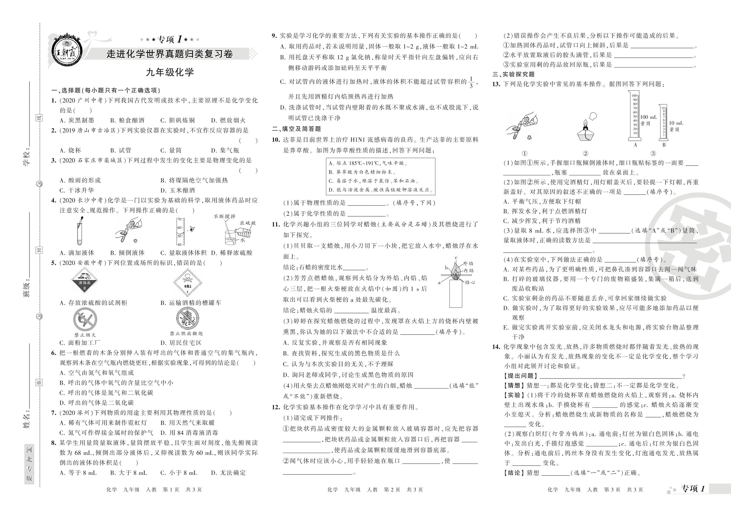 王朝霞期末专项卷——走进化学世界、我们周围的空气真题归类复习九年级上册化学(人教版)【0】