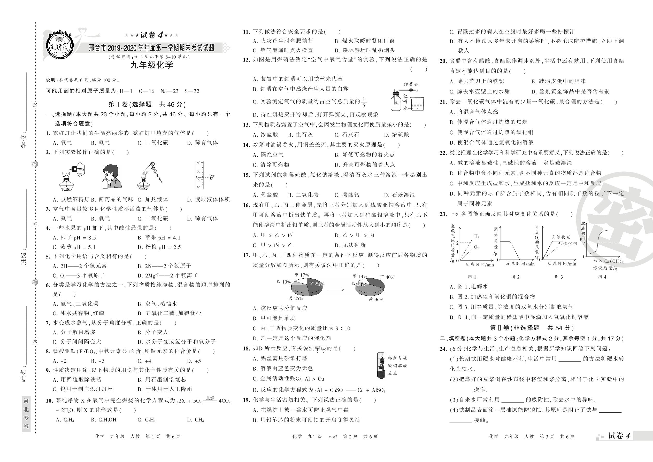 2019-2020学年第一学期邢台市九年级化学试卷(人教版)【4】