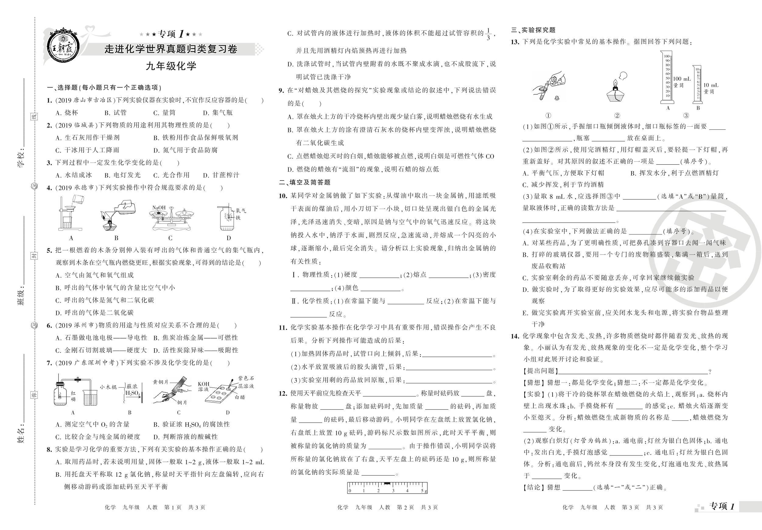 王朝霞期末专项卷——走进化学世界、我们周围的空气真题归类复习九年级上册化学(人教版)_R21081290023【0】